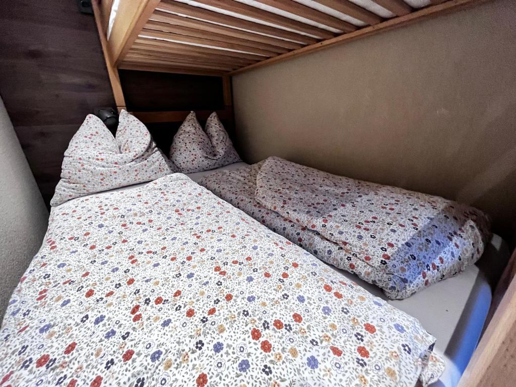 Wohnzimmer mit 3-Sitzer-SchlafSofa, TV mit Satellitenempfang. Küche mit 6-Personen-Essbereich. Schlafzimmer mit doppelbet. Kleine Schlafzimmer mit etagenbet Das Badezimmer verfügt über einlauf Dusche, WC und doppel Waschbecken. Diese Wohnung verfügt über einen großen überdachten Balkon W-Süden.