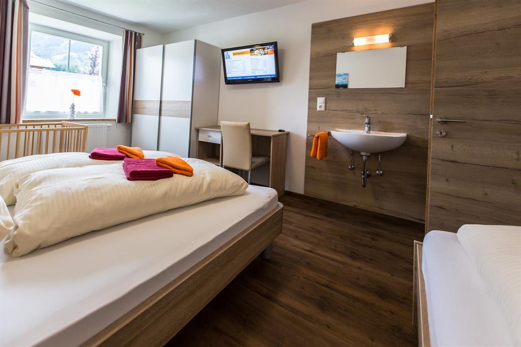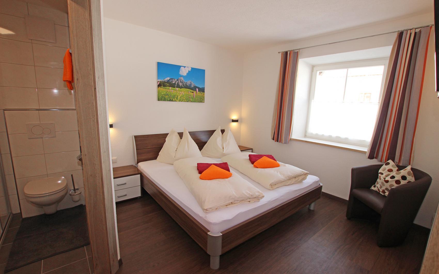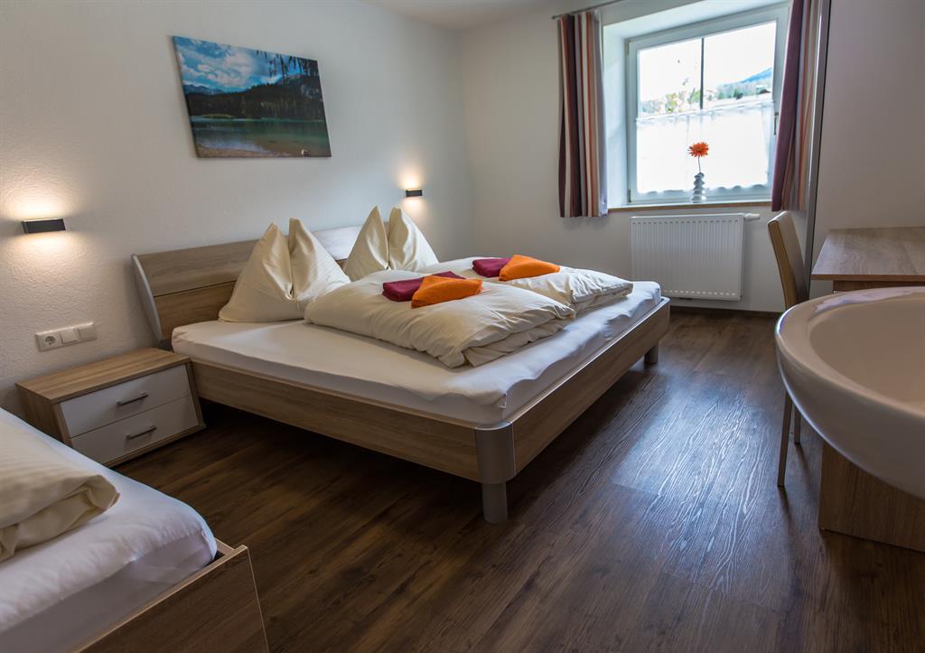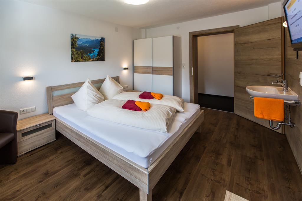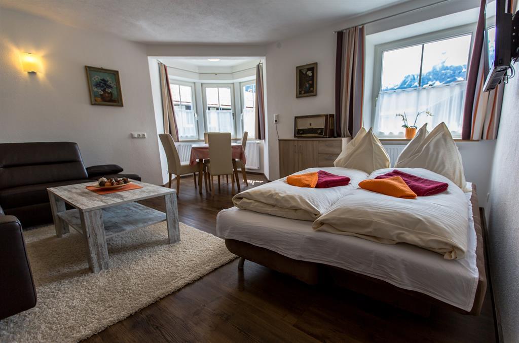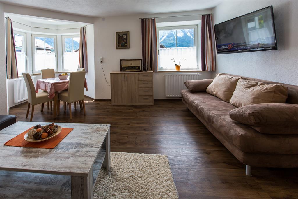 Neu eingerichtete Ferienwohnung Zugspitze mit 70m2 im 1. Sock Schlafzimmer mit Doppelbett und Einzelbett (Bettwäsche vorhanden), Waschbecken und Flat-TV Weiteres Schlafzimmer mit Doppelbett (Bettwäsche vorhanden), Waschbecken und Flat-TV Wohn- Schlafraum mit ausziehbarer Schlafcouch, Erker, Esstischgruppe, Flat-TV. Komplett eingerichtete Küche - Elektroherd mit Backrohr , Kaffeemaschine(Tassimo), Geschirrspüler, Mikrowelle, Toaster, Tisch- und Kochgeschirr) mit gemütlicher Sitzecke. DU/WC (Frotteewäsche vorhanden) Internet via W-LAN