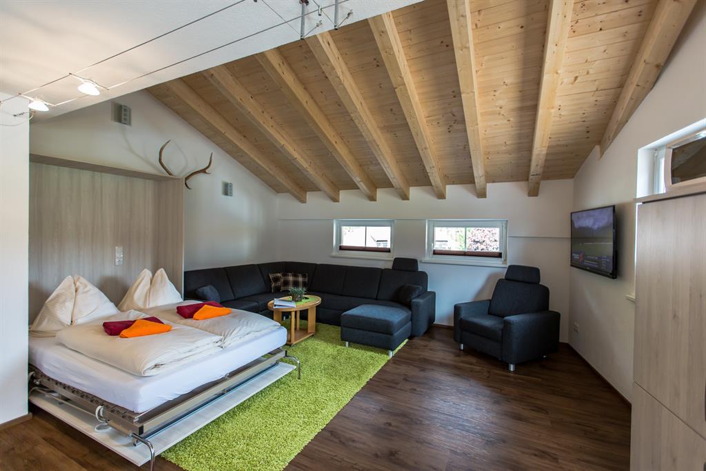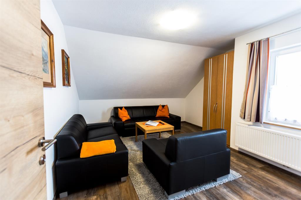 Unser gemütlicher Aufenthaltsraum bietet genügend Platz für ein gemeinsames Frühstück oder gesellige Stunden am Abend.