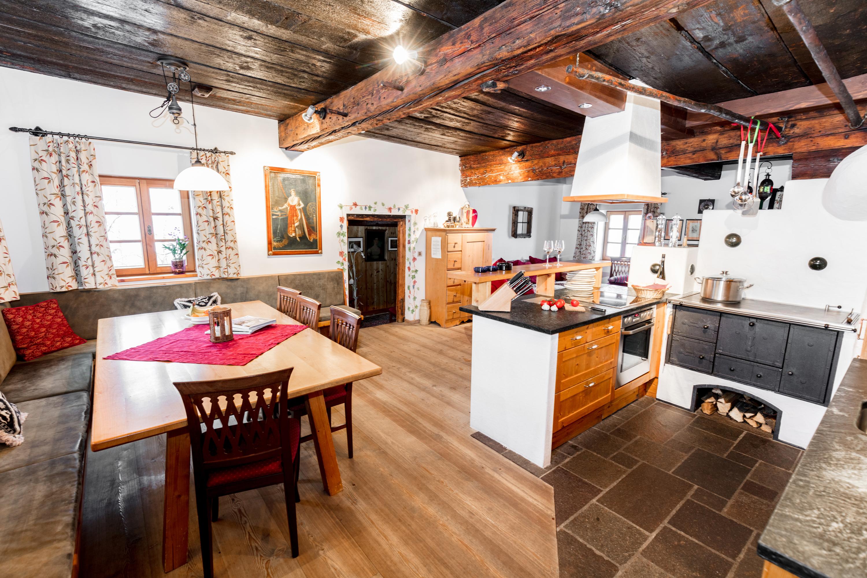 Zum Skifahren und Wandern: Die über 300 Jahre alte, denkmalgeschützte, im traditionellen Holzriegelbau gezimmerte Napoleonvilla ist Land- und Ferienhaus zugleich, für 8-12 Personen belegbar. Die jahrhundertealte Geschichte des Katschtals wurde hier eingefangen und konserviert, doch keineswegs ohne auf Komfort zu verzichten. Neben der originalen Feuerstelle (Rauchkuchl), knorrigen Stiegenaufgängen, knarrenden Türen oder urigen Schlafkammern kann der Gast auf modernste Bäder, Sauna, Küche, Sat-TV und Vernetzung zählen. Das Haus beherbergt unter anderem eine original erhaltene Rauchstube, eine zum Zen-Zimmer adaptierte Getreidekammer, stilvolle Übergangsräume und eine Bibliothek. Die heimelige Atmosphäre des vollständig im Stil des 18. Jahrhunderts errichteten Holzriegelbaus kommt gerade im Winter gut zur Geltung, wenn der Herd und Kamin eingeheizt wird und draußen der Schnee fällt. Die Napoleonvilla liegt auf 1200 Meter auf der Sonnenterrasse des Katschtals, nur 6 km entfernt von den 16 Liftanlagen auf dem Katschberg auf 1600 Meter Seehöhe. Die Anfahrt ist problemlos, es gibt ausreichend Platz für mehrere Autos. Familien- und Wochenskipässe sowie Gruppentarife! Sieben original erhaltene großzügige Räume plus Nebenräume auf zwei Etagen mit Kreativ- und Konferenzkeller inspirieren Besucher wie Gäste durch ihre Ursprünglichkeit. Von der Napoleonvilla aus ins herrliche Naturschutzgebiet Pöllatal am Fuße der Schobergruppe/Hohen Tauern sind es nur 5 Minuten. 30 km unberührte Almlandschaft in diesem Hochtal auf 1400 m Seehöhe sowie herrliche Wanderwege und Klettertouren werden Sie begeistern. Außerdem tolle Angel- und Jagdmöglichkeiten. Nur 20 Min. zum See. Die Napoleonvilla, Ihr Ferienhaus für kreative Auszeiten, bietet eine tolle große Wohnküche mit allem Equipment, dass Sie sich als Hobby- und Profi-Koch oder Köchin wünschen. Wenn Sie möchten, können wir Kühlschrank und Speis mit den Ingredenzen und Zutaten anfüllen, die Sie benötigen, oder wir organisieren für Sie einen Mietkoch für Ihren Aufenthalt. Sie können natürlich auch von der Hauswirtschafterin bekocht werden, wenn Sie möchten. Die Auswahl ist groß, wir richten uns nach Ihren Wünschen.