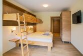 Variante 1: 1 Doppelbett, 1 Stockbett & 1 Klappbett über dem Doppelbett, Dusche, extra WC und TV