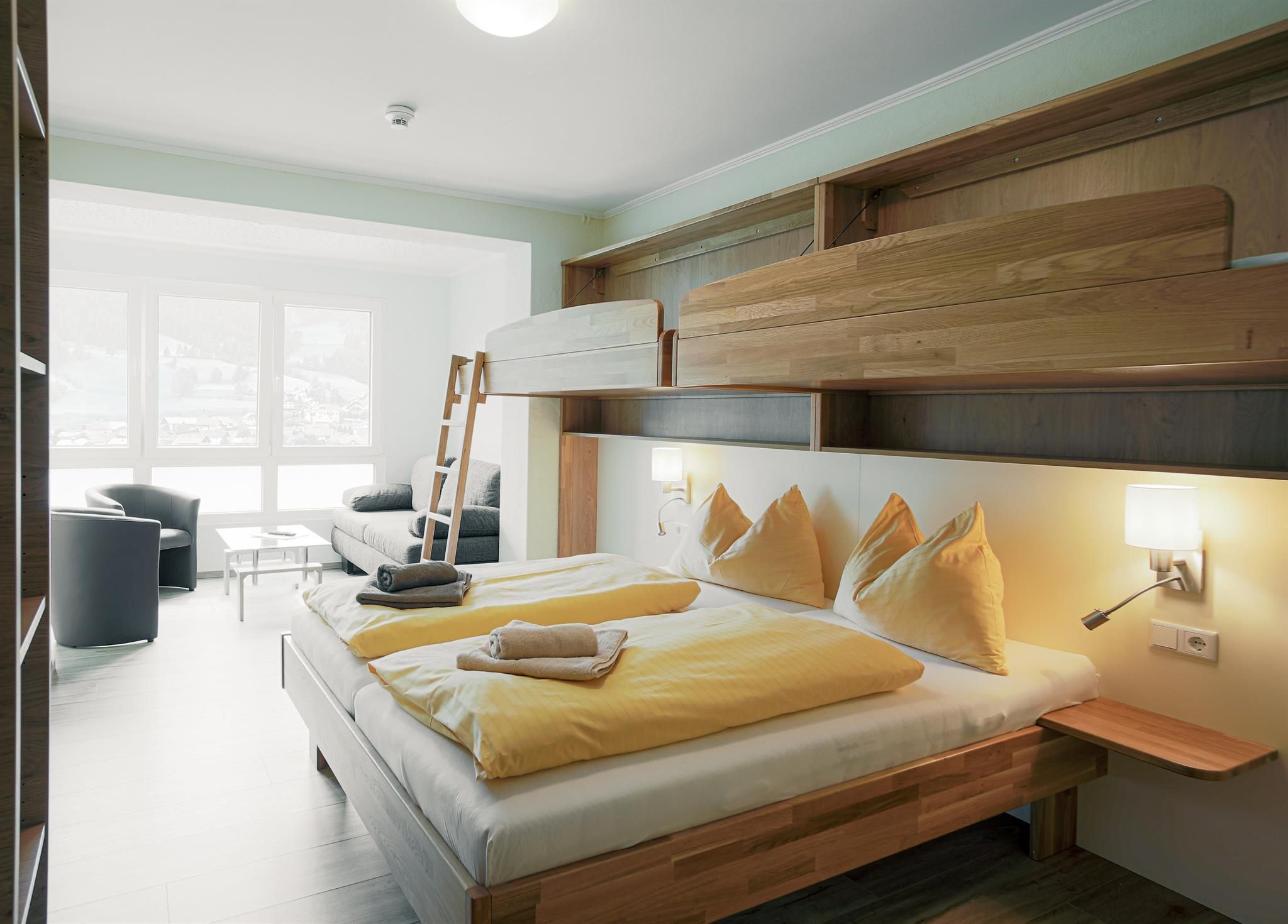 Unser Familienzimmer bieten ein tolles Bergpanorama und sind wie folgt ausgestattet: