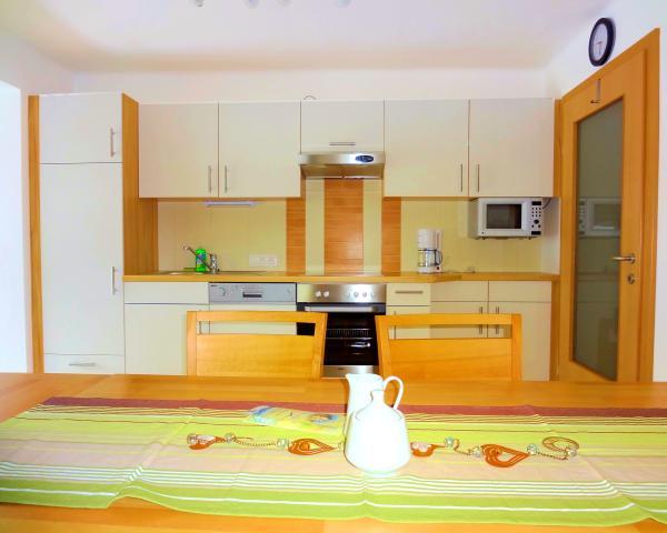 Das Appartement ist vollkommen ausgestattet mit Geschirrspüler, Elektroherd + Backrohr, Kühlschrank mit Gefrierfach, Kaffeemaschine, Wasserkocher, Toaster, Mikro, Geschirr, Gläser und Besteck, Bettwäsche sowie Hand- und Badetücher werden kostenlos zur Verfügung gestellt, Hochstuhl und Gitterbett vorhanden.