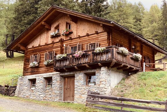 Almhütte „Gipper“ (Selbstversorgerhütte) – ein romantisches Blockhaus oberhalb von Heiligenblut ca. 4 km entfernt, liegt auf 1.700 Meter Seehöhe auf der Gipperalm, mitten im Nationalpark Hohe Tauern, Parkmöglichkeiten und Bächlein neben der Hütte