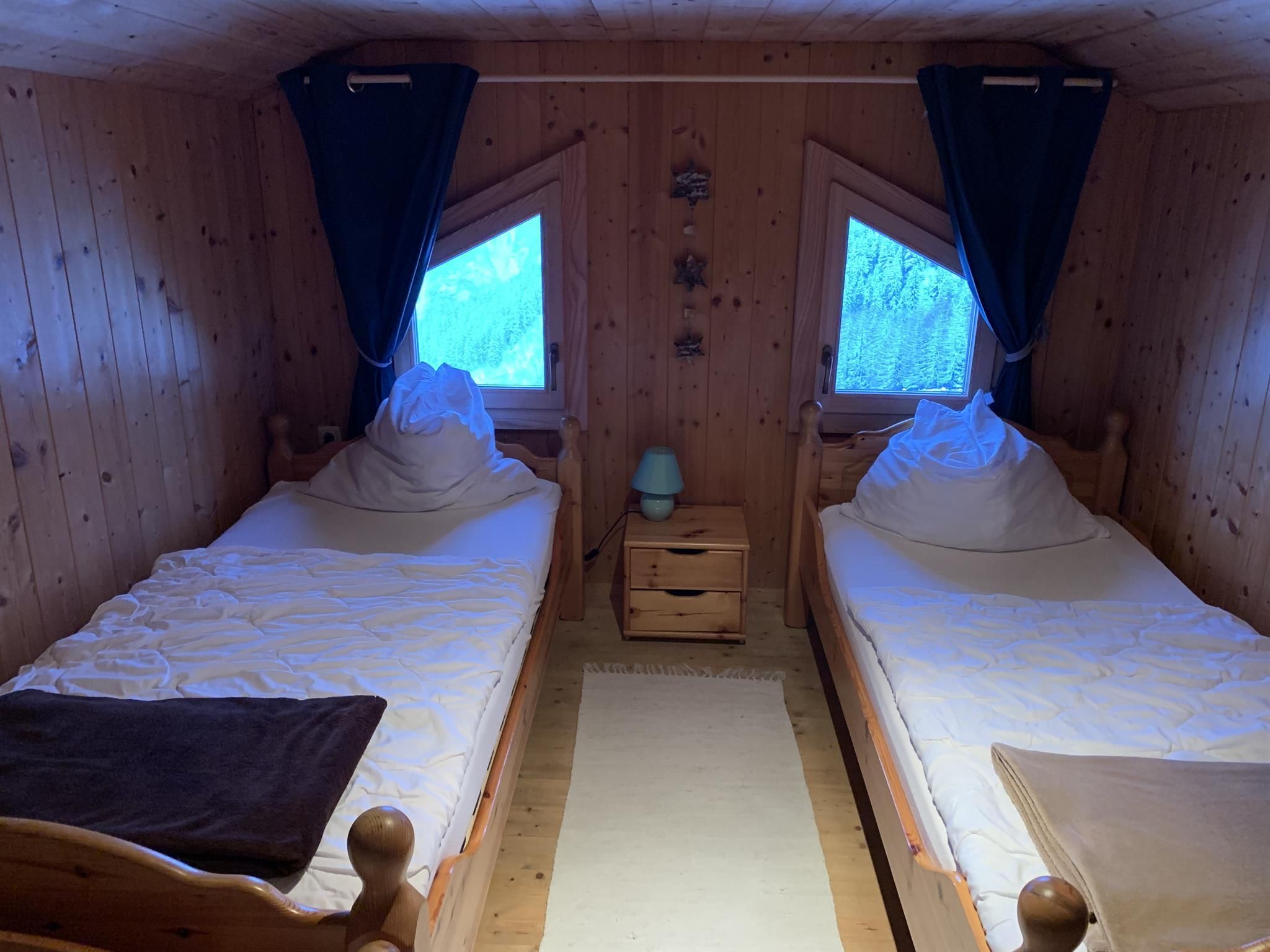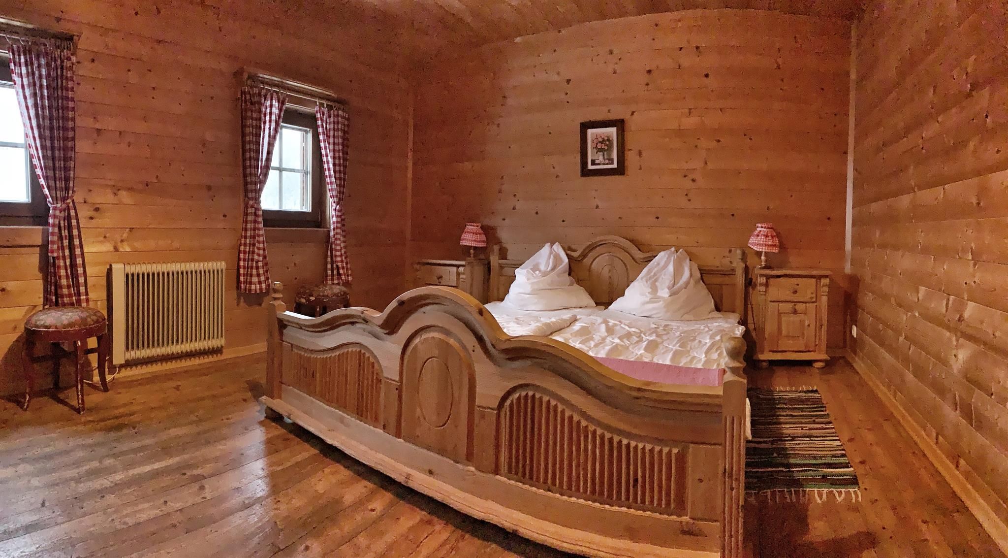 Almhütte „Gipper“ (Selbstversorgerhütte) – ausgestattet mit Vorraum, großer, gemütlicher Wohnküche mit Holzherd, E-Herd, Kühlschrank, Kaffeemaschine, Koch- und Essgeschirr, 1 Einzelzimmer, 1 Doppelzimmer, 1 weiteres Doppelzimmer verbunden über eine Treppe mit 1 Vierbettzimmer (nicht durch Türen oder Wand getrennt), Badezimmer mit Dusche/WC, Balkon, und großer sonnseitiger Terrasse