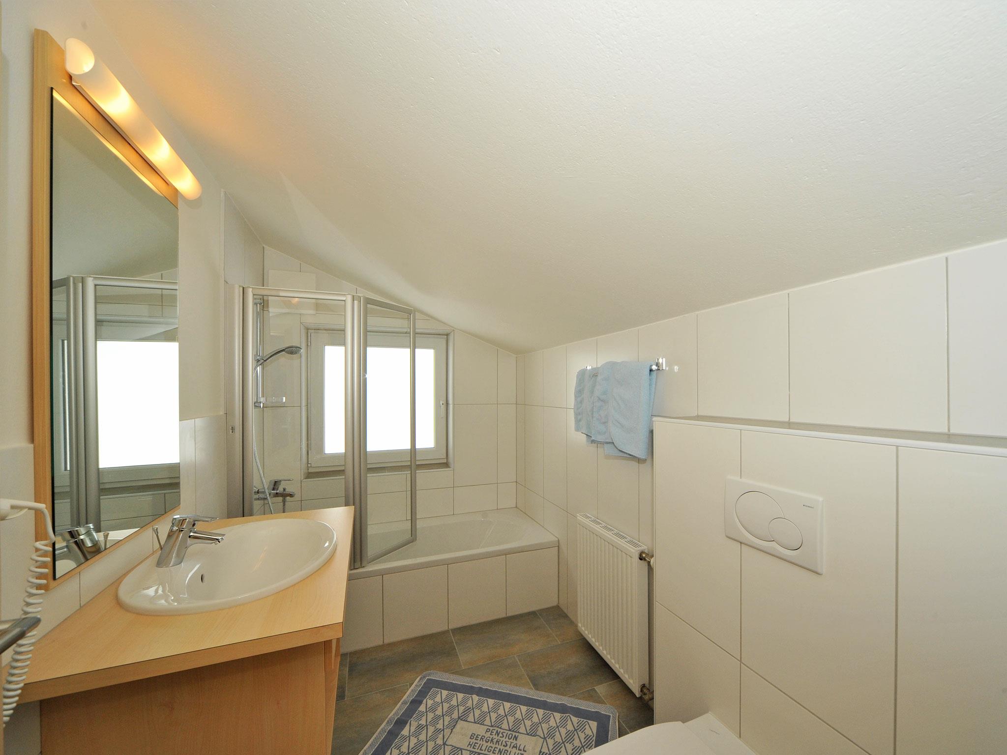 • großzügige Badezimmer mit Waschbecken und Infarotkabine