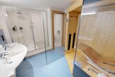 • großzügige Badezimmer mit Doppelwaschbecken und Infarotkabine