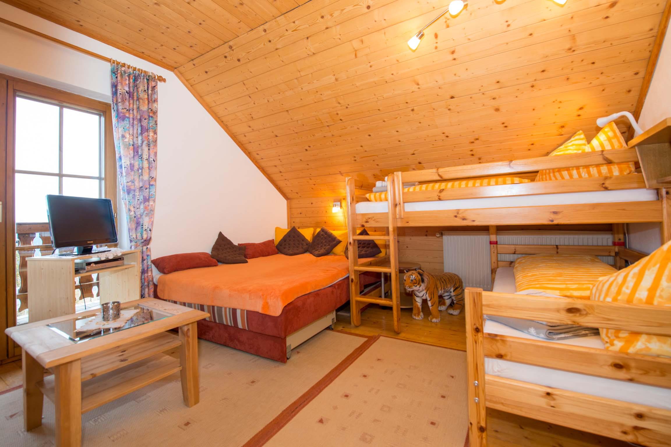 Und sollte das Wetter einmal weniger zu Aktivitäten an der frischen Luft anregen: gratis WLAN, TV und eine Ecke mit Spielen werden Sie auch bei Regen unterhalten. Im angrenzenden Almhotel Fichtenheim erwartet Sie zudem eine einladende Saunalandschaft zur kostenlosen Mitbenutzung (bitte anmelden!). Mehrmals pro Woche gibt es dort auch die Möglichkeit eine entspannende Massage zu buchen.