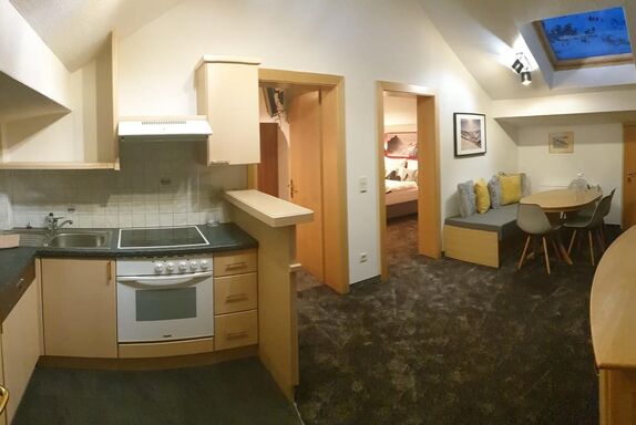 Unser Appartement ist mit ca. 70 m² der schönste Ort für 4-5 Personen um den Urlaub zu genießen. Es erwarter Sie ein top ausgestattete Wohnküche- & Essbereich mit Schlafsofa für 1 Person, 2 separate Schlafzimmer mit Doppelbett und 1 Schlafsofa, ein Badezimmer mit Badewanne und WC, ein Flachbild-HD Fernseher, gratis WIFI Zugang, einen Panorama-Balkon.
