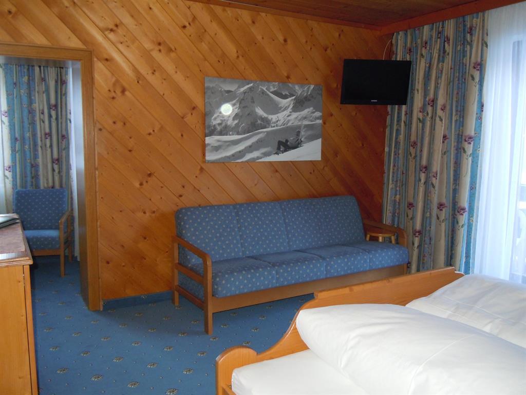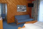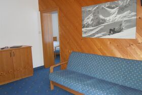 Schönes Drei - oder Vierbett Zimmer mit Dusche oder Bad/WC, Vorraum, Balkon mit Bergblick, großer Flachbildfernseher, kostenloses W - LAN, eigener Schlafraum mit einem Einzelbett sowie Schlafsofa im Zimmer der Eltern. (Auch für Erwachsene geeignet)