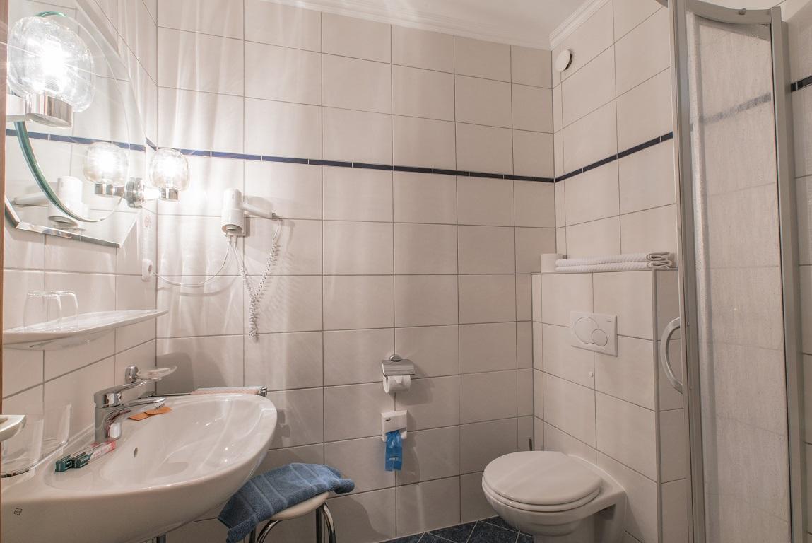 Schönes Doppelzimmer mit Dusche oder Bad/WC, Vorraum, großteils mit Balkon, großer Flachbildferseher und gratis W-Lan.