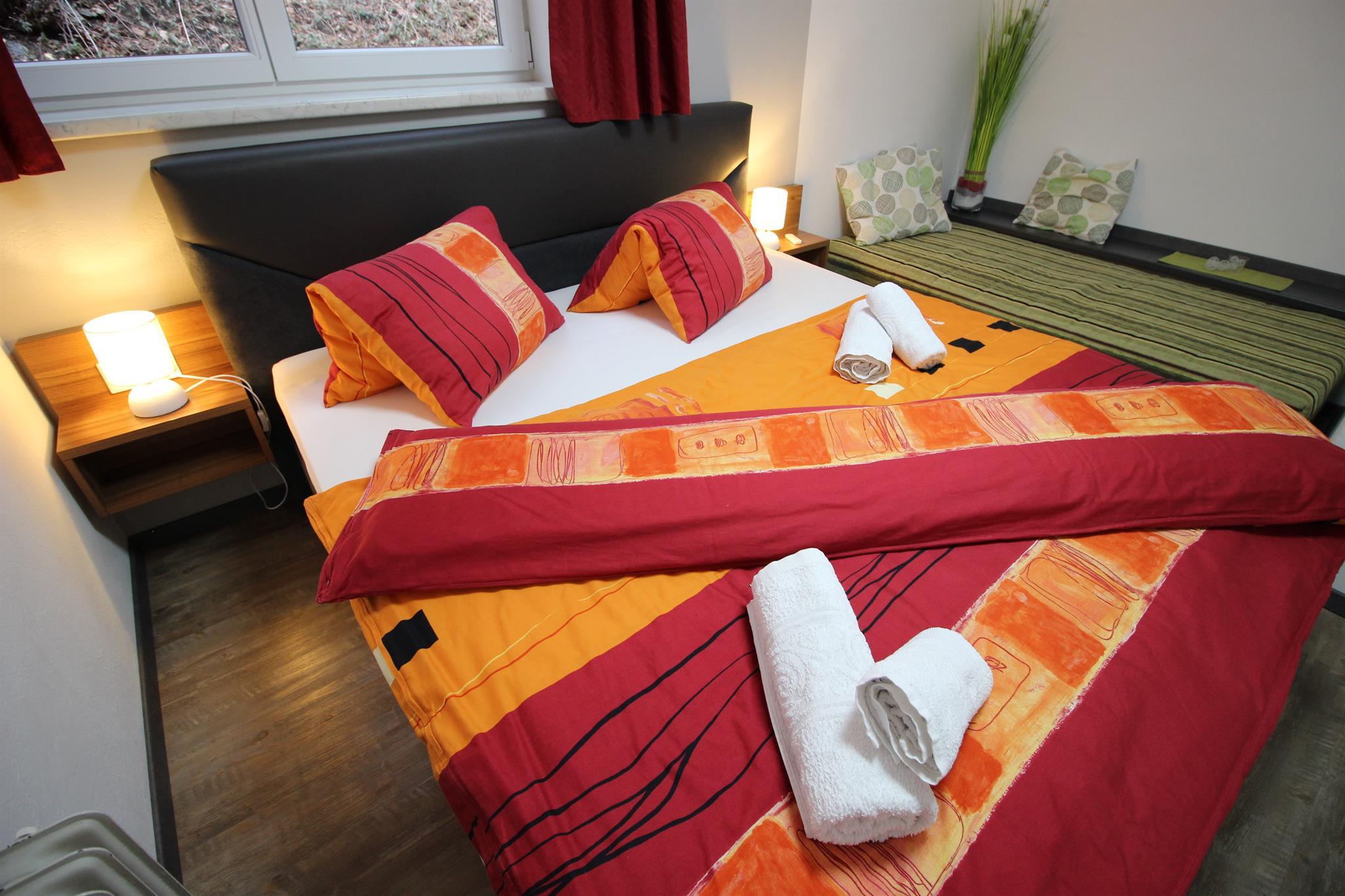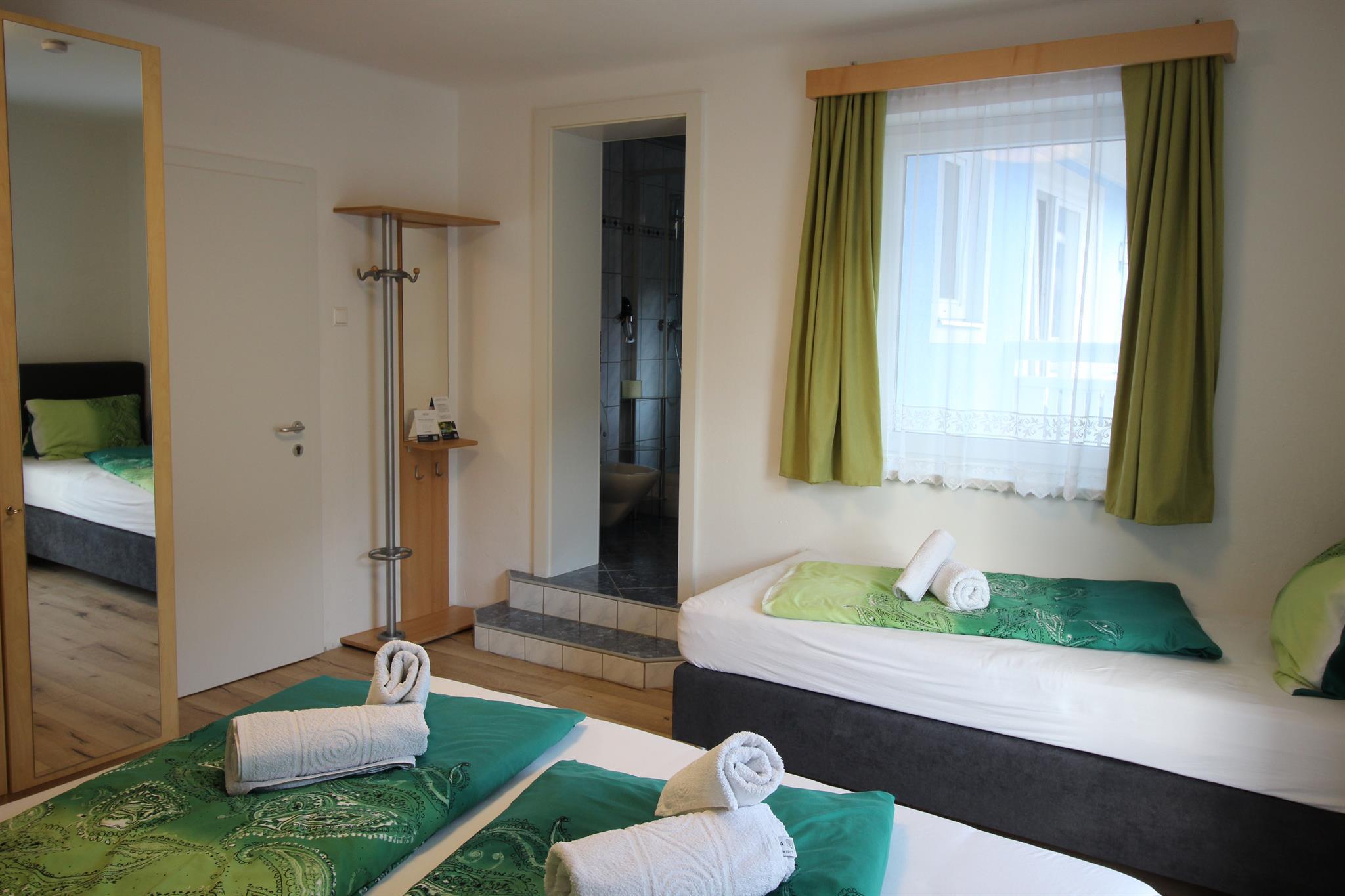 Räumlichkeiten: Appartement 02 mit Balkon für 2-6 Personen besteht aus Vorraum mit Garderobe, Küche mit Ausziehcouch, zwei Schlafzimmer mit 1 Doppelbett und 1 Einzelbett zwei Räume mit Dusche/WC.