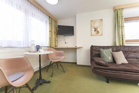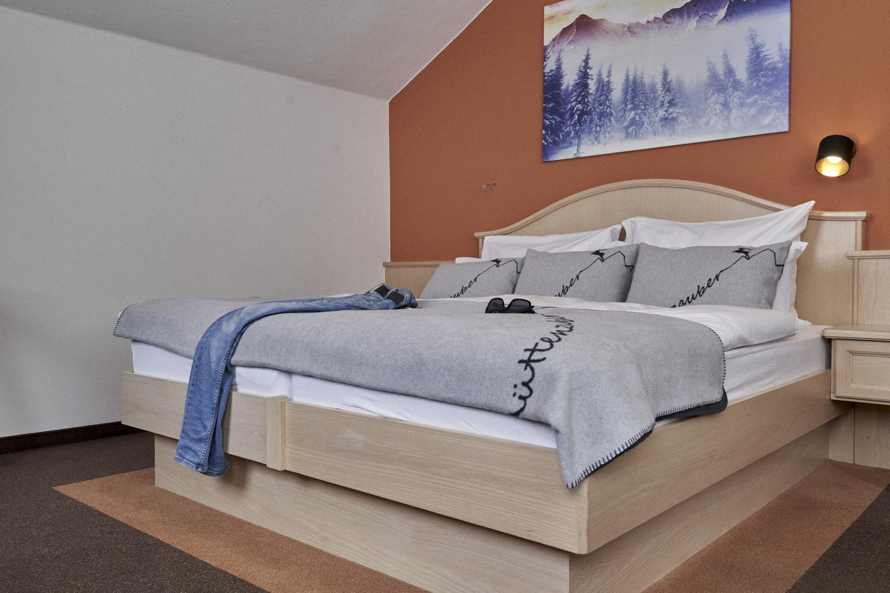 Unser Doppelzimmer mit ca. 26 m² ist ideal für 2-3 Personen. Während des Aufenthalts steht ein schönes Doppelbett sowie ein Schlafsofa für eine Person, ein Badezimmer mit Wanne oder Dusche und WC, eine Sitzgelegenheit mit Flachbild-HD Fernseher, kostenfreier WIFI Zugang, ein Panorama-Balkon mit Bergblick nach Süden zur Verfügung.
