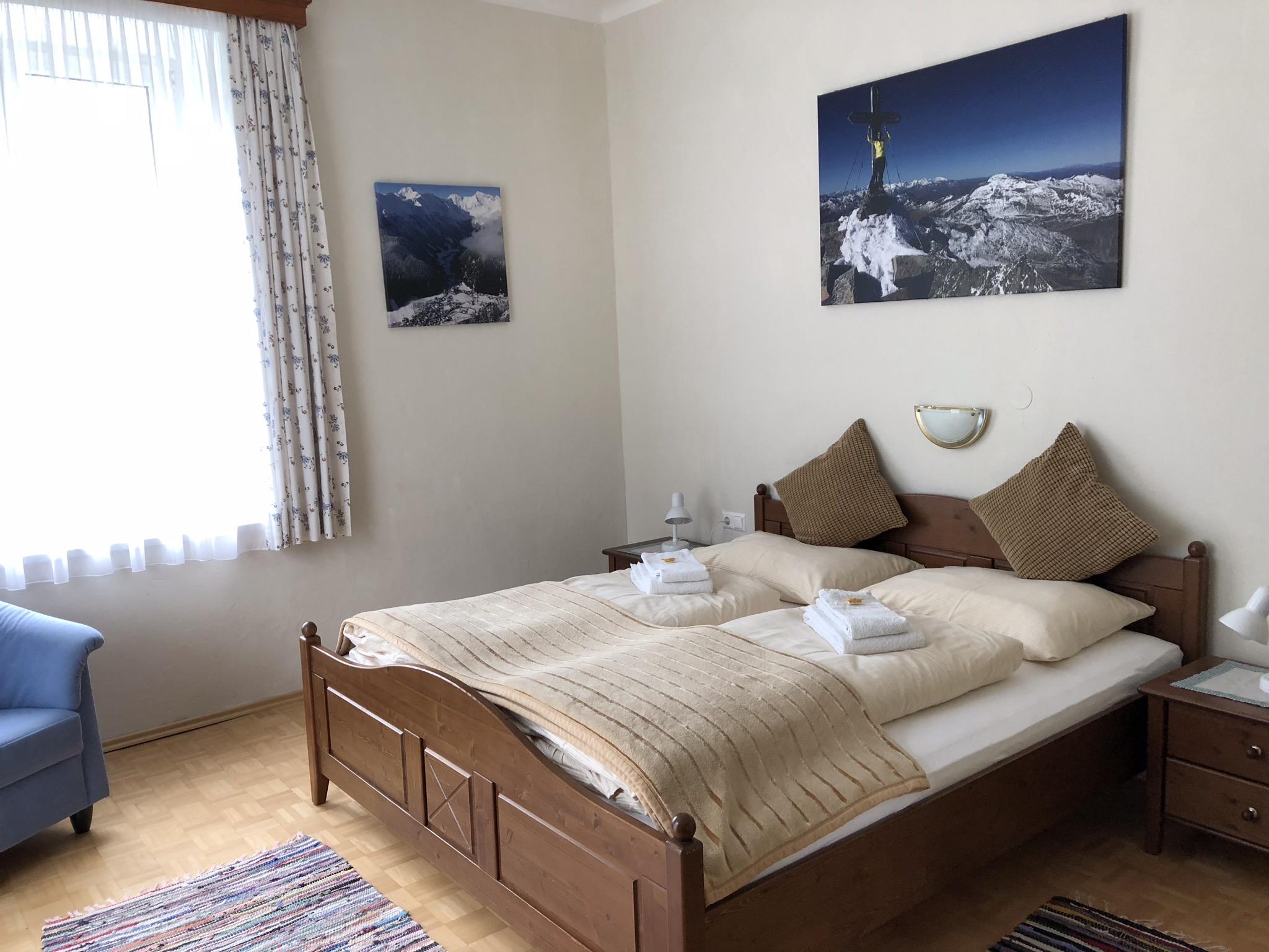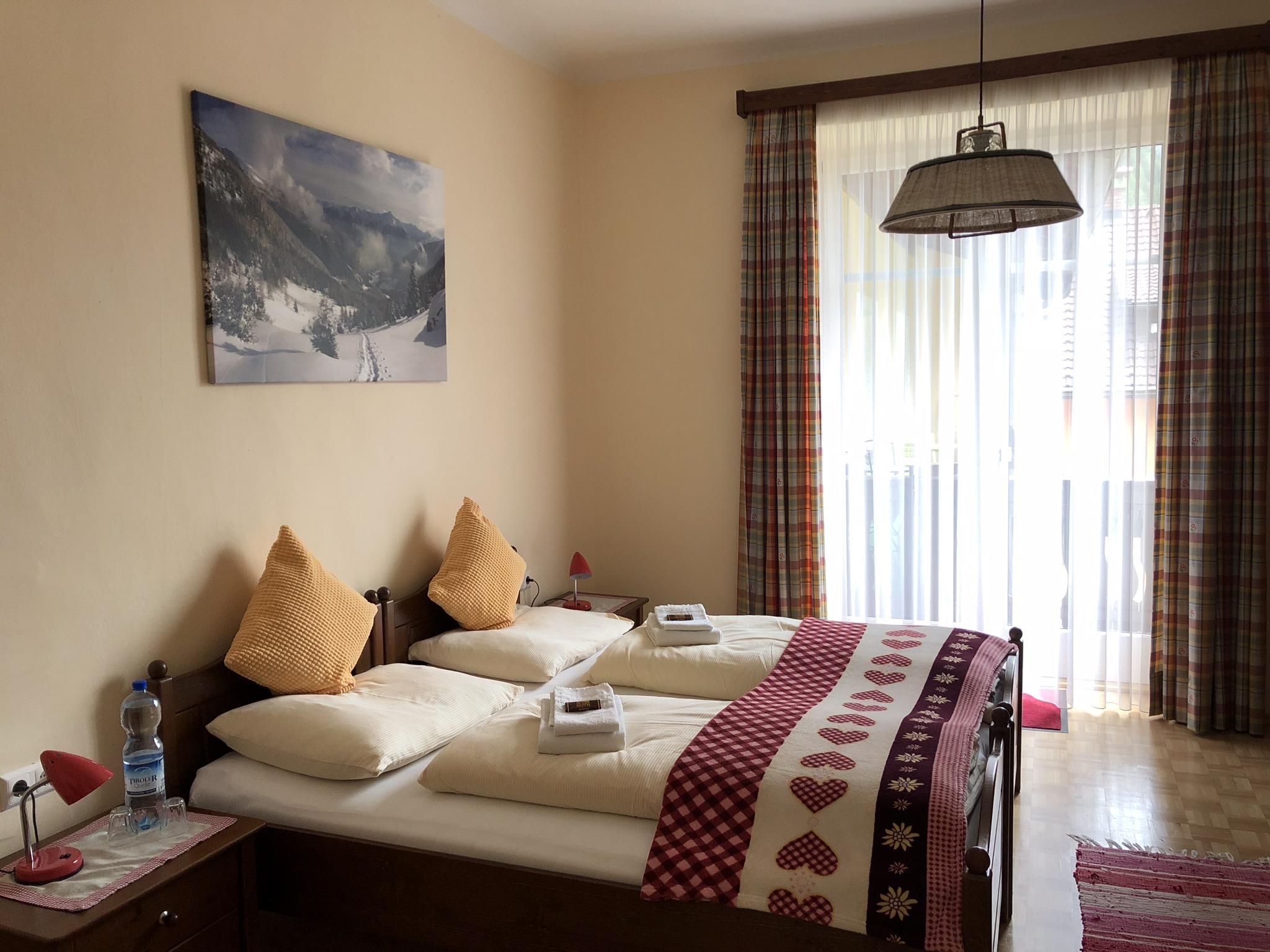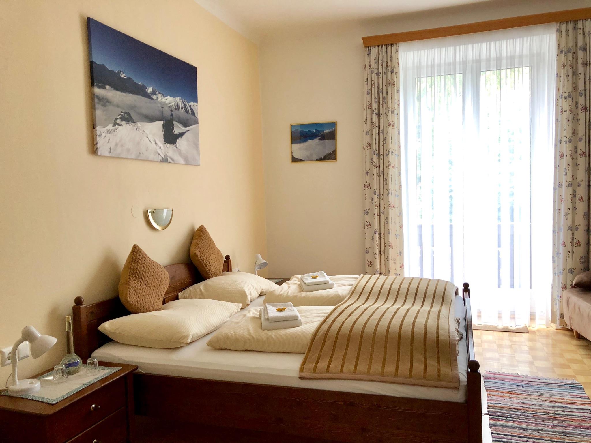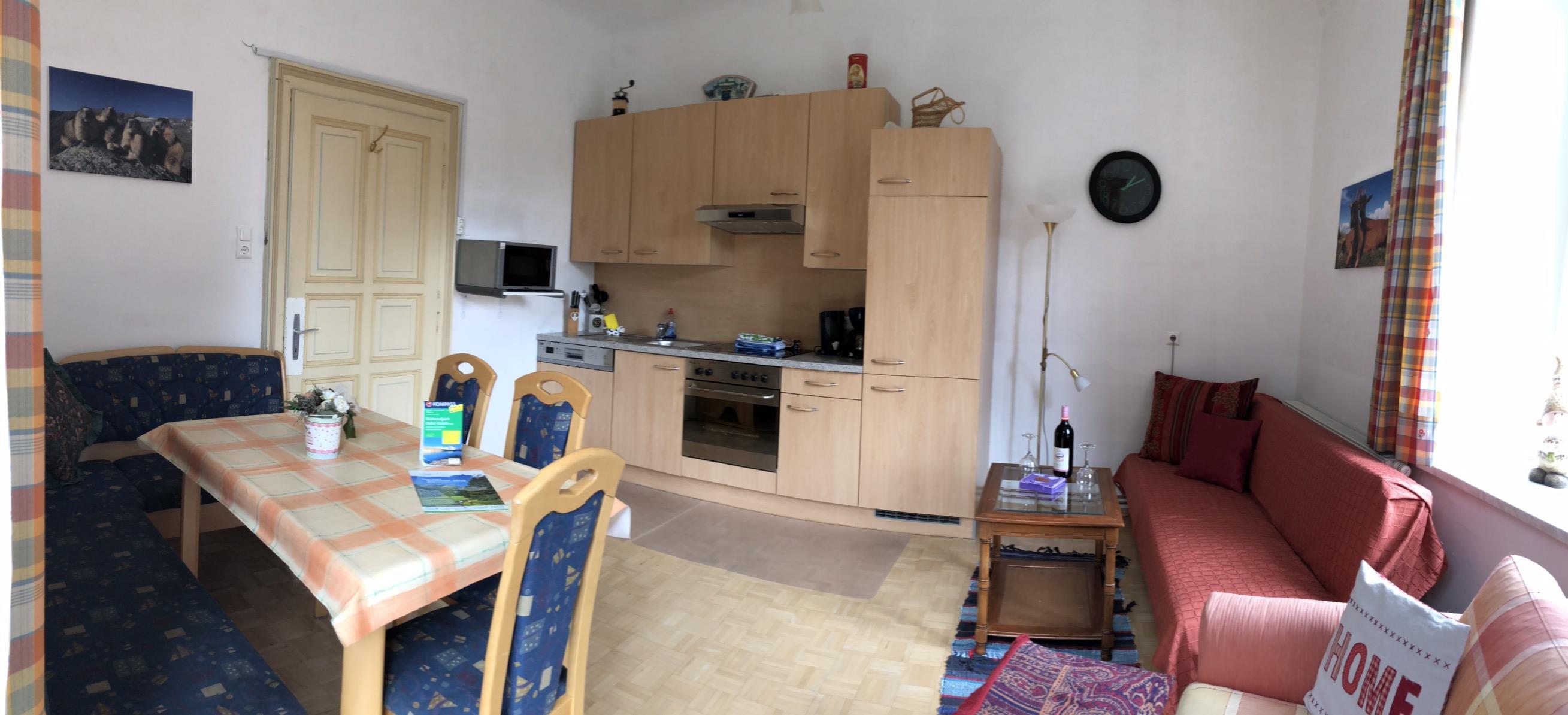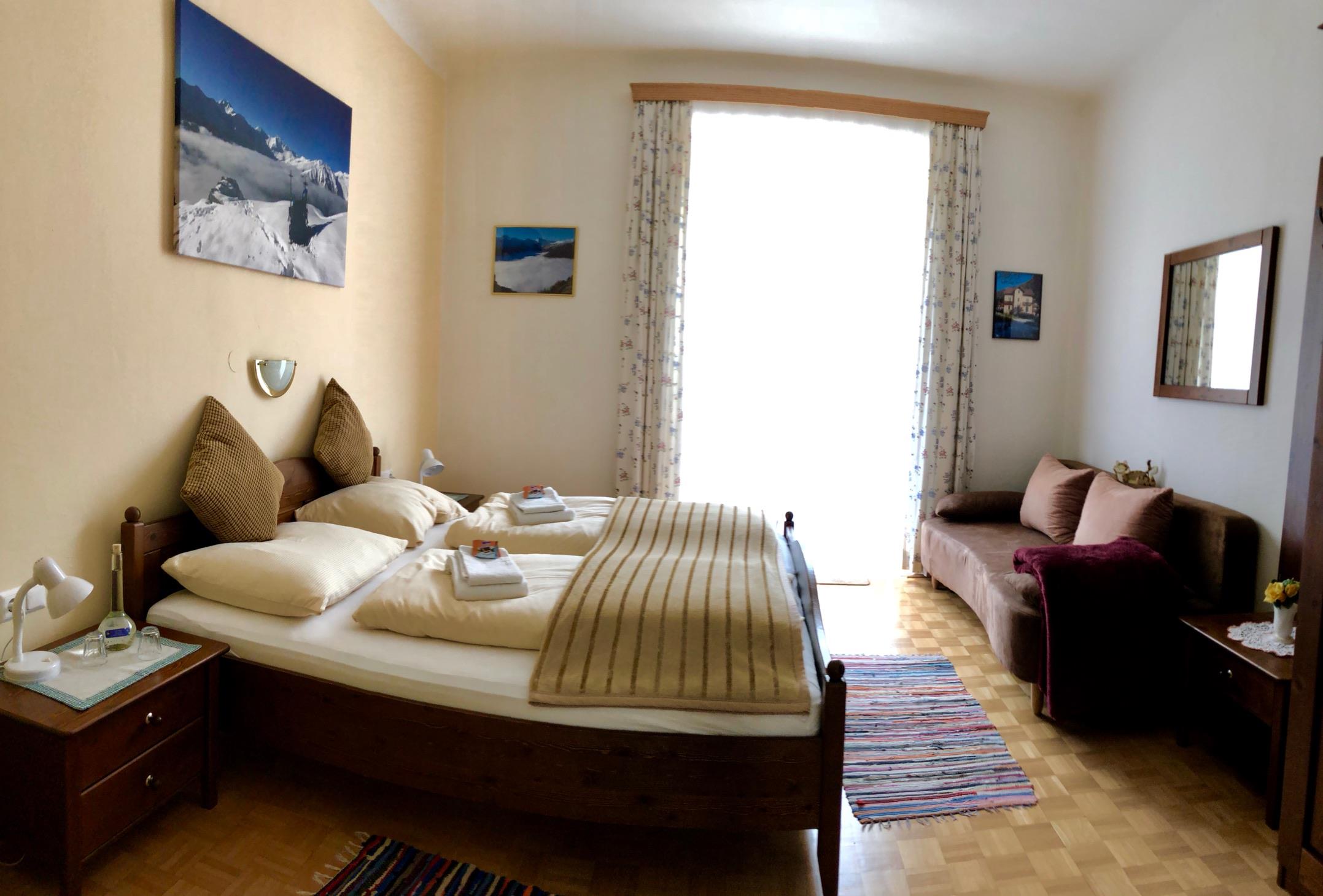 Appartement Schöne Aussicht, 108 qm, 3 Schlafzimmer mit Doppelbett und Coach, großes Bad, geräumige Wohnküche mit Ceranherd, Backofen, Mikrowelle, Toaster, Kaffeemaschine, kostenloses W-lan und Kabel-TV Die gemütlichen Zimmer haben jeweils einen eigenen Balkon mit Aussicht auf die Berge