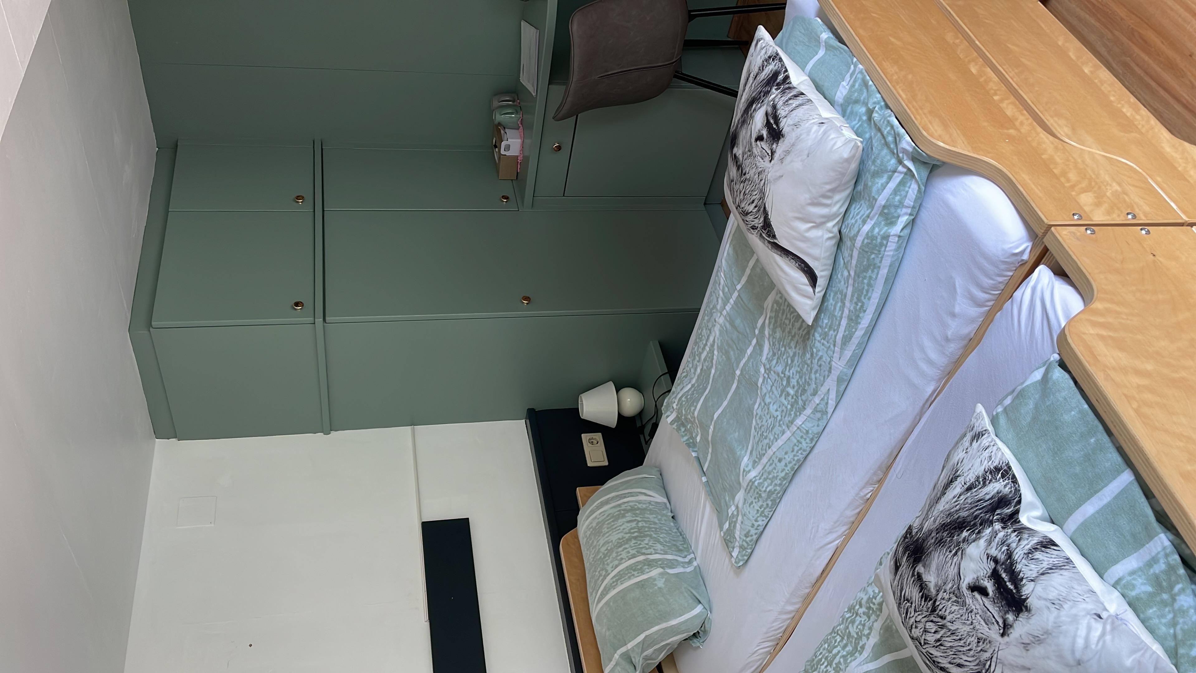 • Kleiderschrank für dein Gepäck und eine Sitzecke zum Entspannen