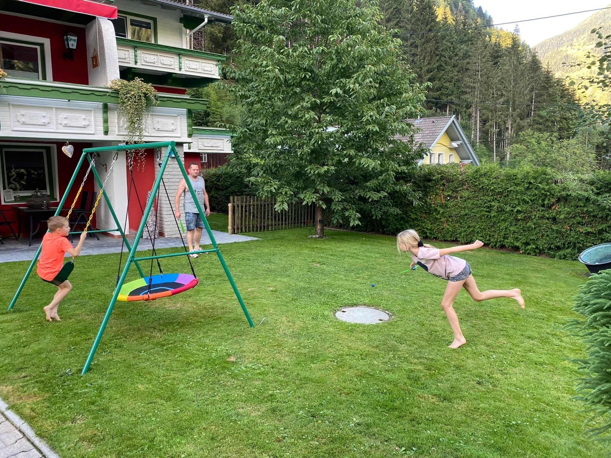 Wir sind hundefreundlich! Dein vierbeiniger Begleiter ist herzlich willkommen, mit dir die Natur zu genießen. Unsere Unterkunft ist zudem **kinderfreundlich**. Der gemeinsame Garten bietet viel Platz zum Spielen mit einer **Schaukel** und einer **Wippe**. Es ist der ideale Ort für Familien, um sich zu entspannen, während die Kinder sich austoben.