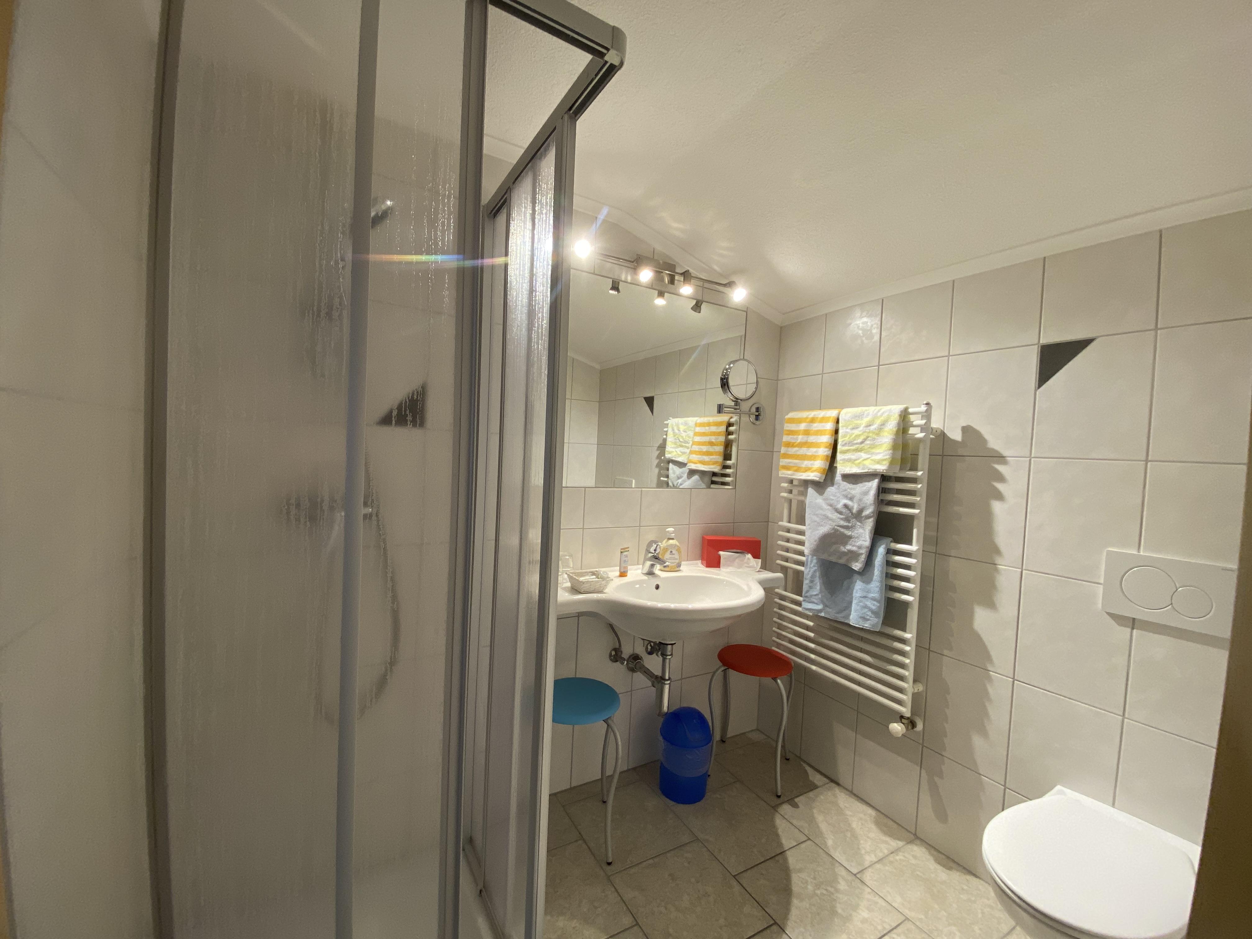 Ein ganzes Stockwerk für Sie allein! Komfortables Appartement mit 2 Doppelzimmern und 1 Einzelzimmer, 3 x Dusche/WC mit Föhn. Vorraum, Wohnküche mit Essbereich und Sofa, zusätzlicher Wohnraum mit Relaxsofa, Balkon, Kabel-TV, Radio, Telefon und Safe. Größe: ca. 108 m².