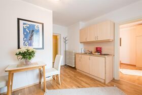 1. OG, Vorraum, Wohnzimmer mit Kochnische, Schlafzimmer, DU/WC - max 3 Pers. Die Wohnung ist für 2 Personen. Der Wohnbereich kann aber auch zum Schlafraum für 1 bis 2 Personen umfunktioniert werden. Die beiden Wohnungen W9 und W10 sind unmittelbar nebeneinander und gemeinsam ideal für Familien mit älteren Kindern. Da kann man ungestört den Urlaub genießen.