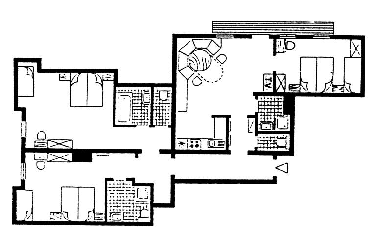 Wohnung für die Großfamilie oder Gruppen! Geräumiger Wohnraum mit eigener Küche, praktische Anrichte, erweiterbare Ess- und Sitzgruppe für gemütliche Stunden. Drei getrennte Schlafräume mit je Dusche oder Bad und WC. Zwei Zimmer im Dachgeschossstil; großer Balkon