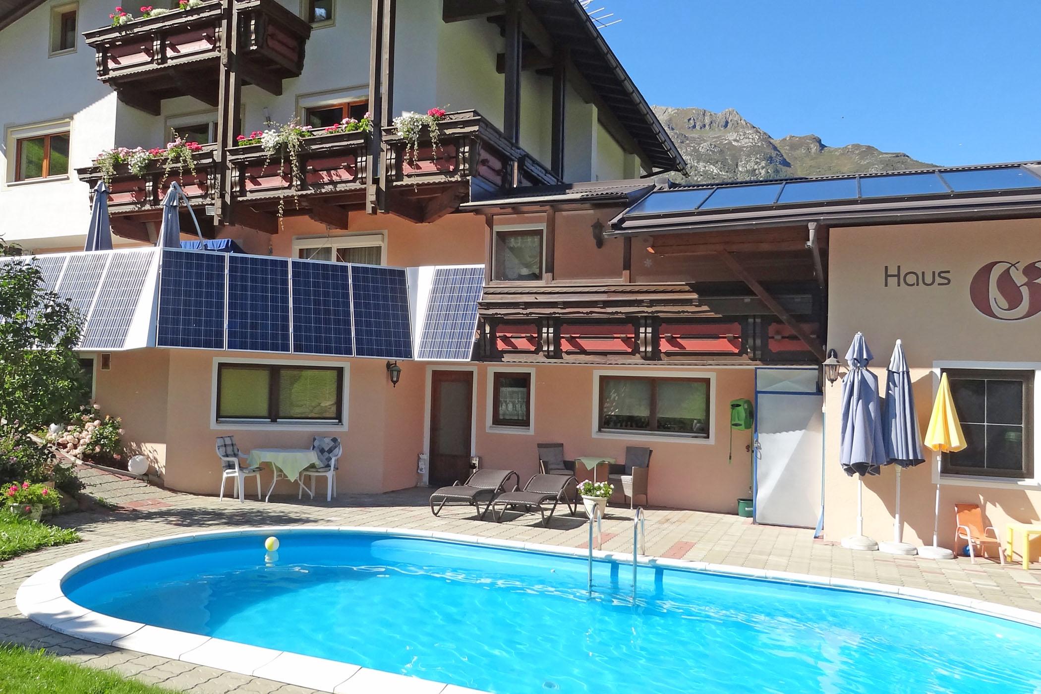 Unser Haus Gerhard befindet sich im Ortsteil Unterwald, oberhalb von Sölden (Plan E2). Ruhige und schöne Aussichtslage mit Blick auf Sölden und die umliegenden Berge. Im Winter werden die Skier schon vor dem Haus angeschnallt, da die Piste hinter dem Haus vorbeiführt. Im Sommer guter Ausgangspunkt für Wanderungen. Ein Pluspunkt ist unser Freischwimmbad direkt vor dem Haus. Der Zentrums-Shuttle bringt sie im Sommer wie Winter direkt ins Zentrum (ca. 5 Gehminuten vom Haus).