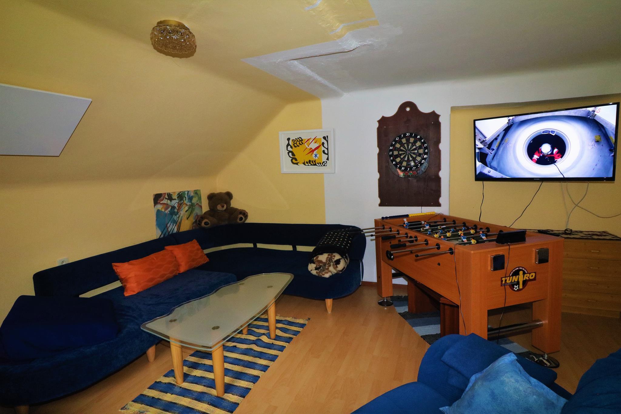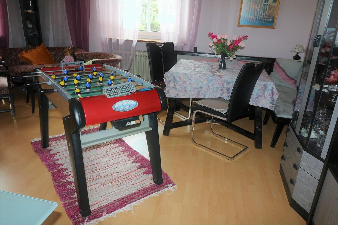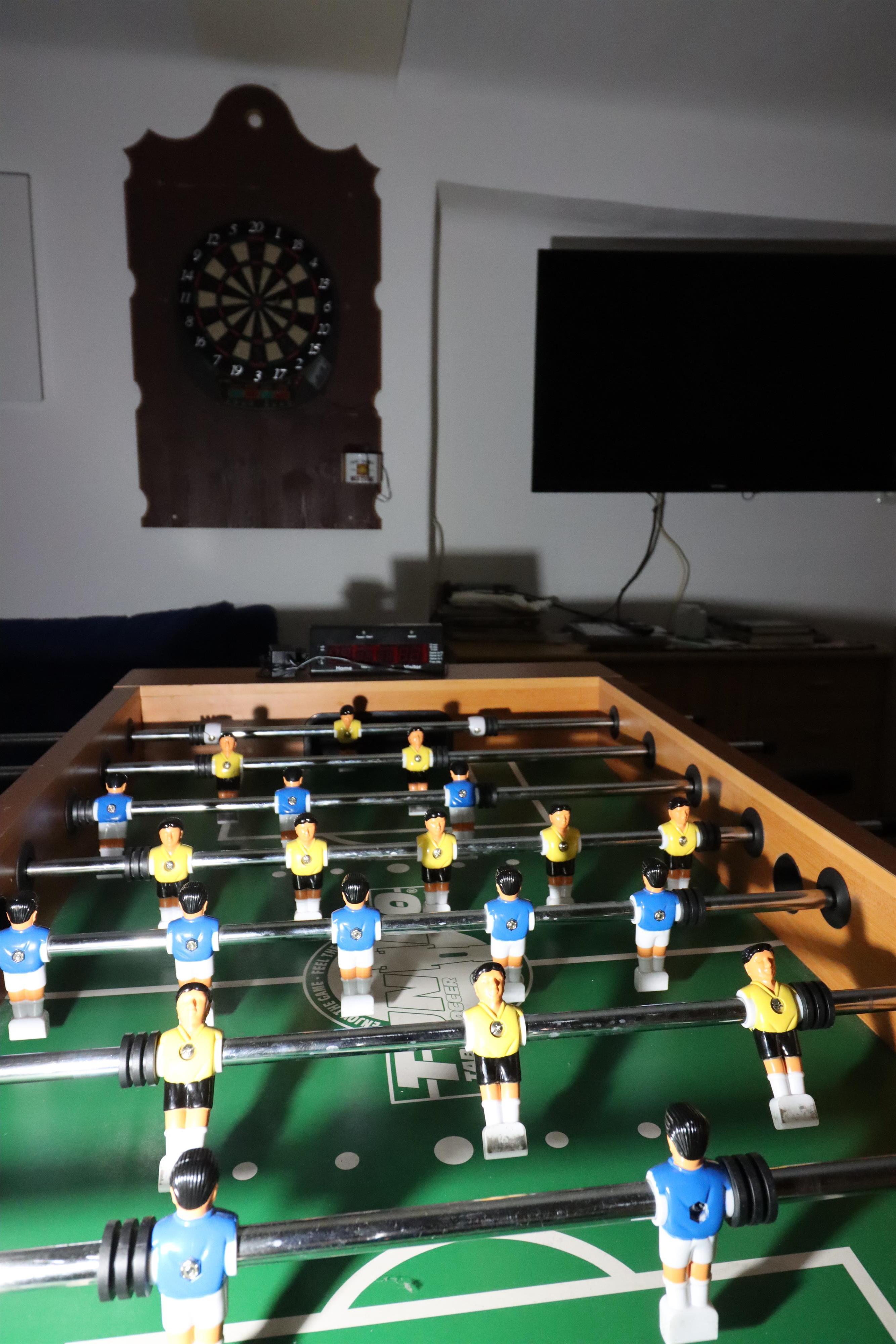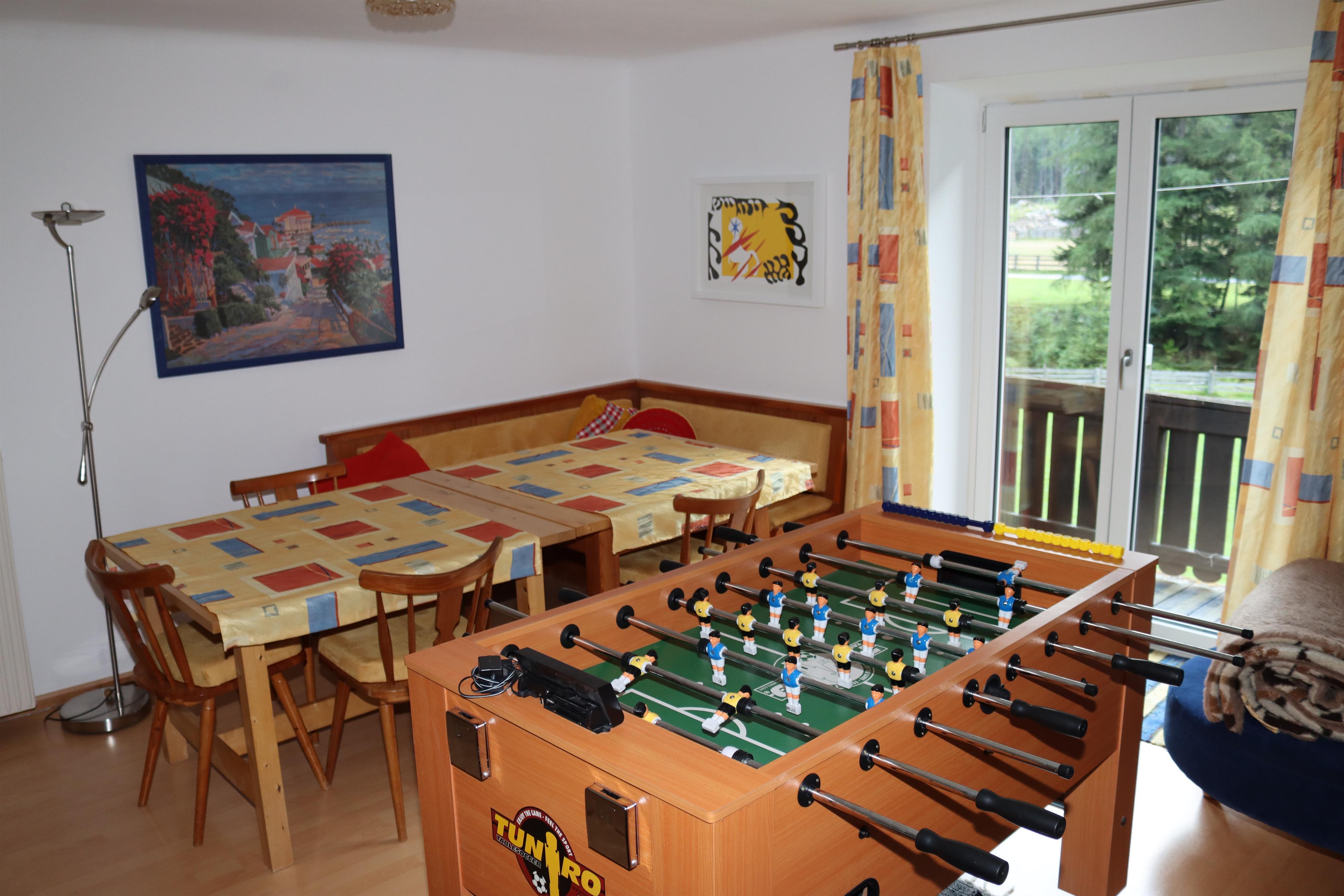 1. Obergeschoß: 100 qm, 3 Zimmer, Spiele-/Wohnzimmer, Küche (Mikrowelle, Geschirrspüler), Bad (Dusche, WC), WC, Kaminofen, SAT-TV, CD/DVD, Soccer-Tisch, WLAN