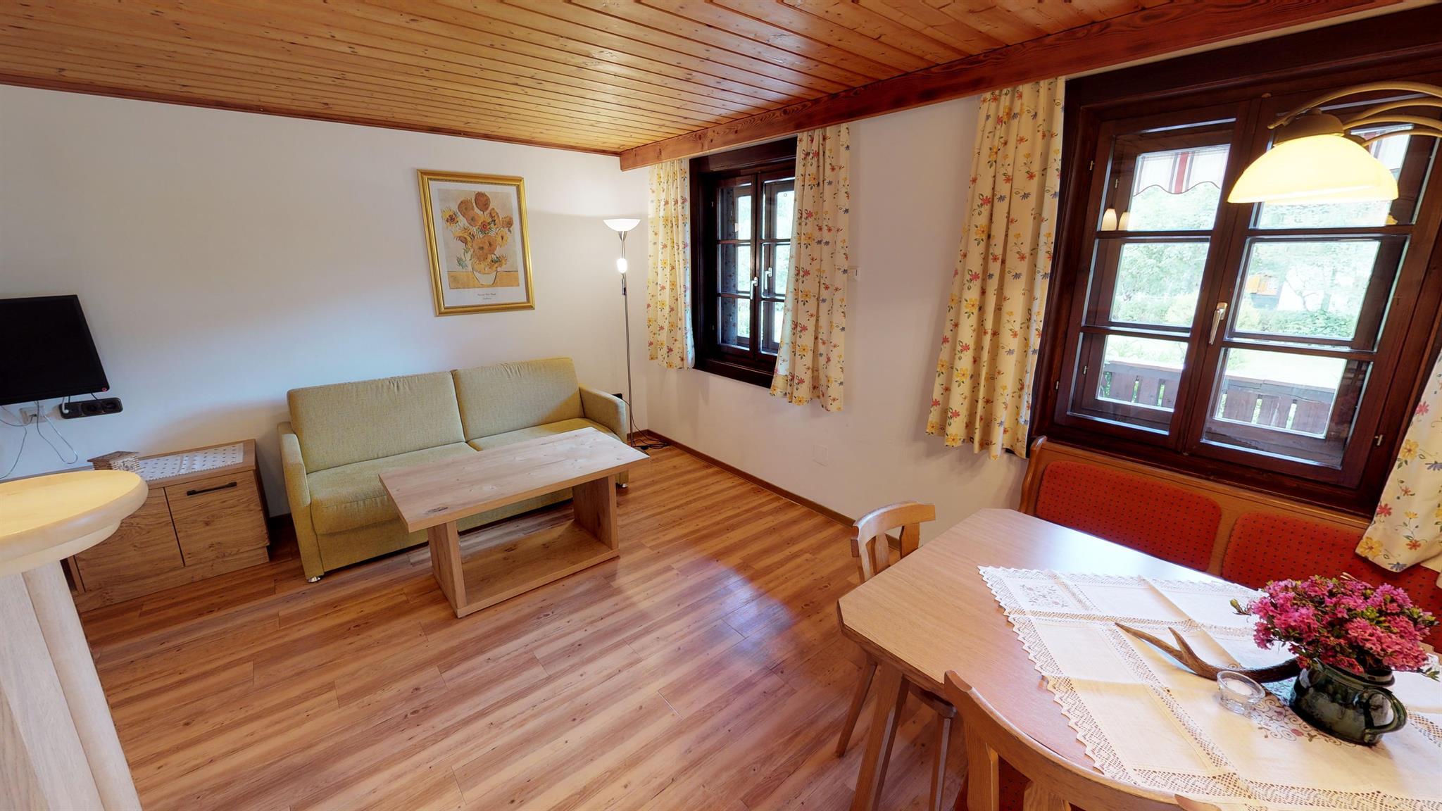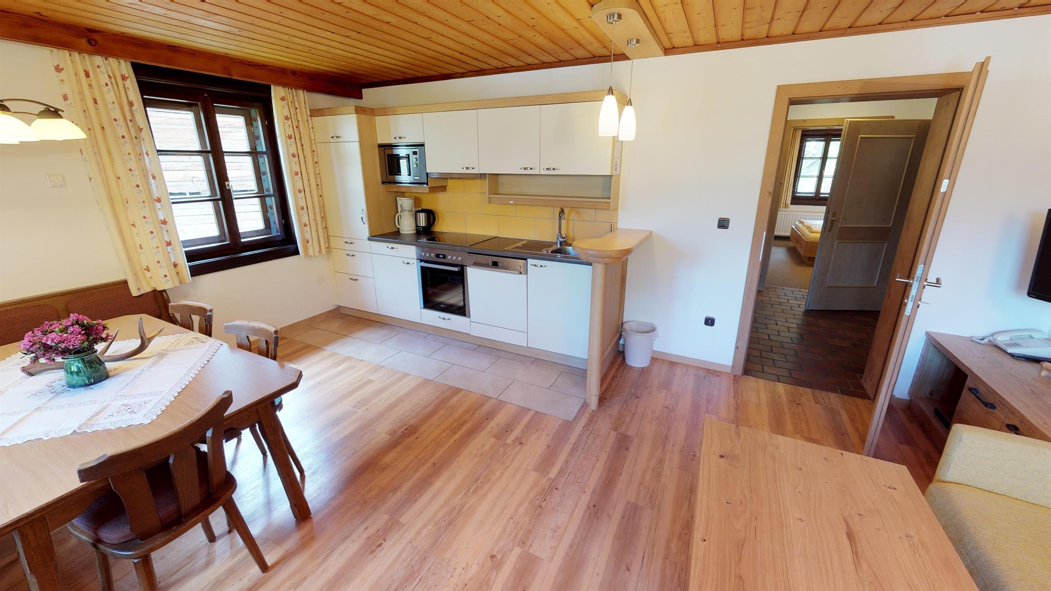 Unsere 60 m2 Ferienwohnungen – Typ B im Haus Wolfgangbauer verfügen über: * einen Vorraum * ein Schlafzimmer (3 Betten) * eine gemütliche Wohnküche mit Doppelausziehcouch, komplett eingerichtet incl. Sat-TV, Telefon, Geschirrspüler, 4-Plattenherd mit Backrohr, Kaffeemaschine, Mikrowelle * ein Badezimmer und ein getrenntes WC * möblierte Terrasse oder Balkone * W- Lan frei verfügbar!