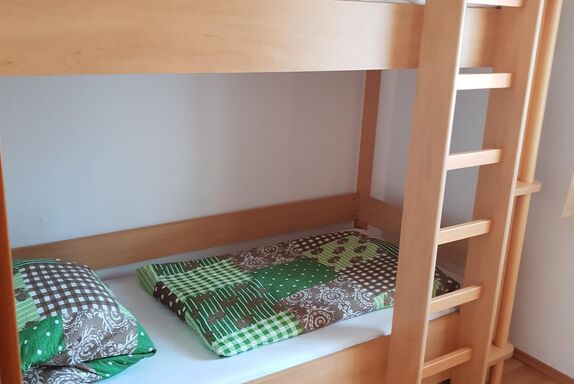 Das Appartement befindet sich im Erdgeschoss und verfügt über eine voll ausgestattete Küche mit einem Essbereich, ein Wohnschlafzimmer für 2 Personen und ein Stockbettzimmer für 2 Personen und eigenes Bad.