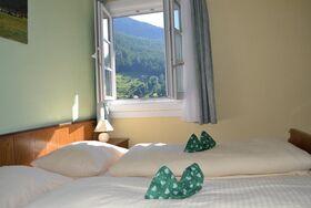 Dieses Zimmer ist für eine Familie mit einem Kind geeignet. Ausgestattet ist das geräumige Zimmer mit einem Doppelbett und 1 Couchbett. Zudem verfügt das Zimmer Auernig großteils über einen Balkon, von wo aus Sie einen herrlichen Blick auf die umliegende Bergwelt haben. Das Badezimmer hat eine Dusche und WC.