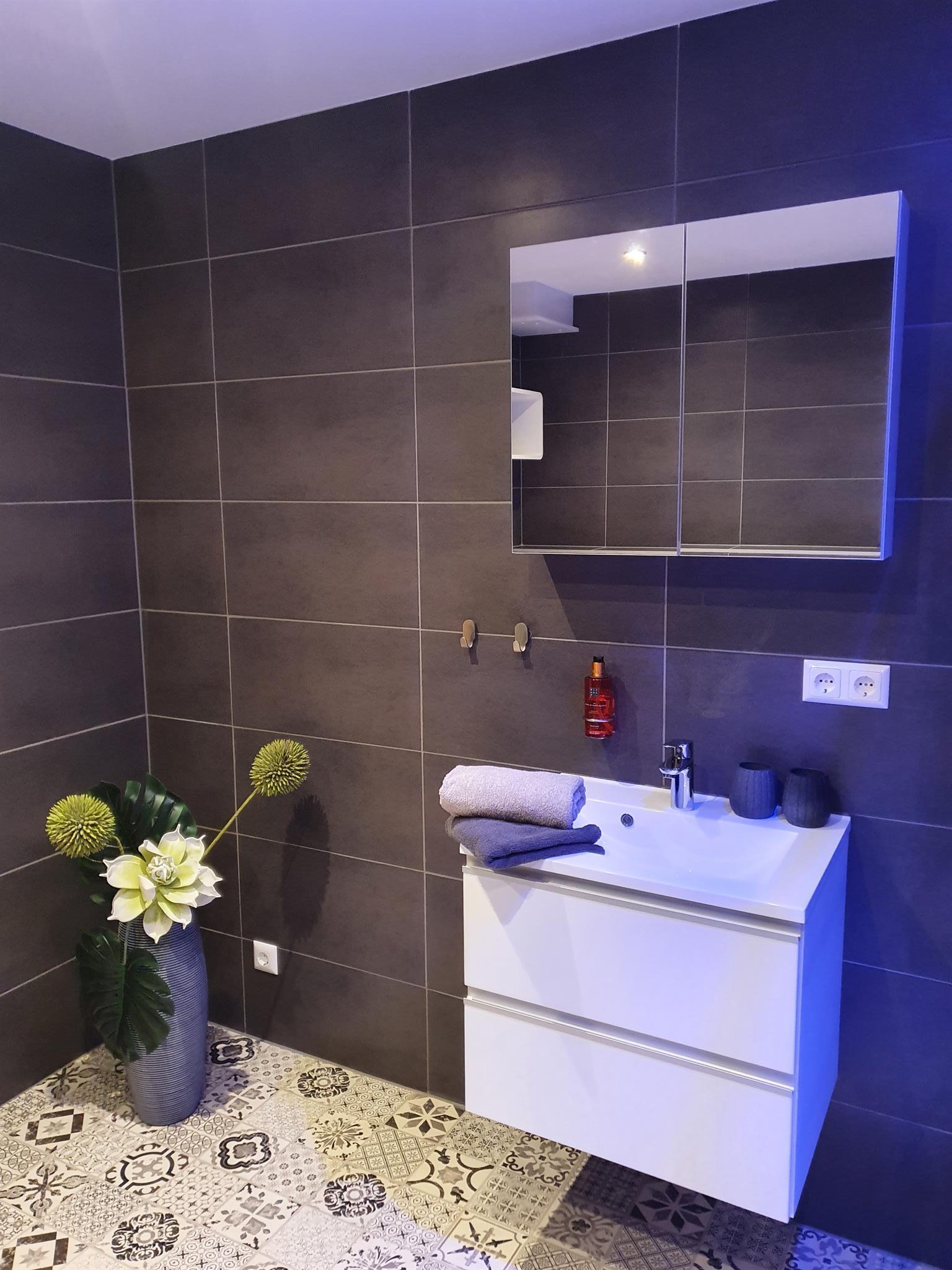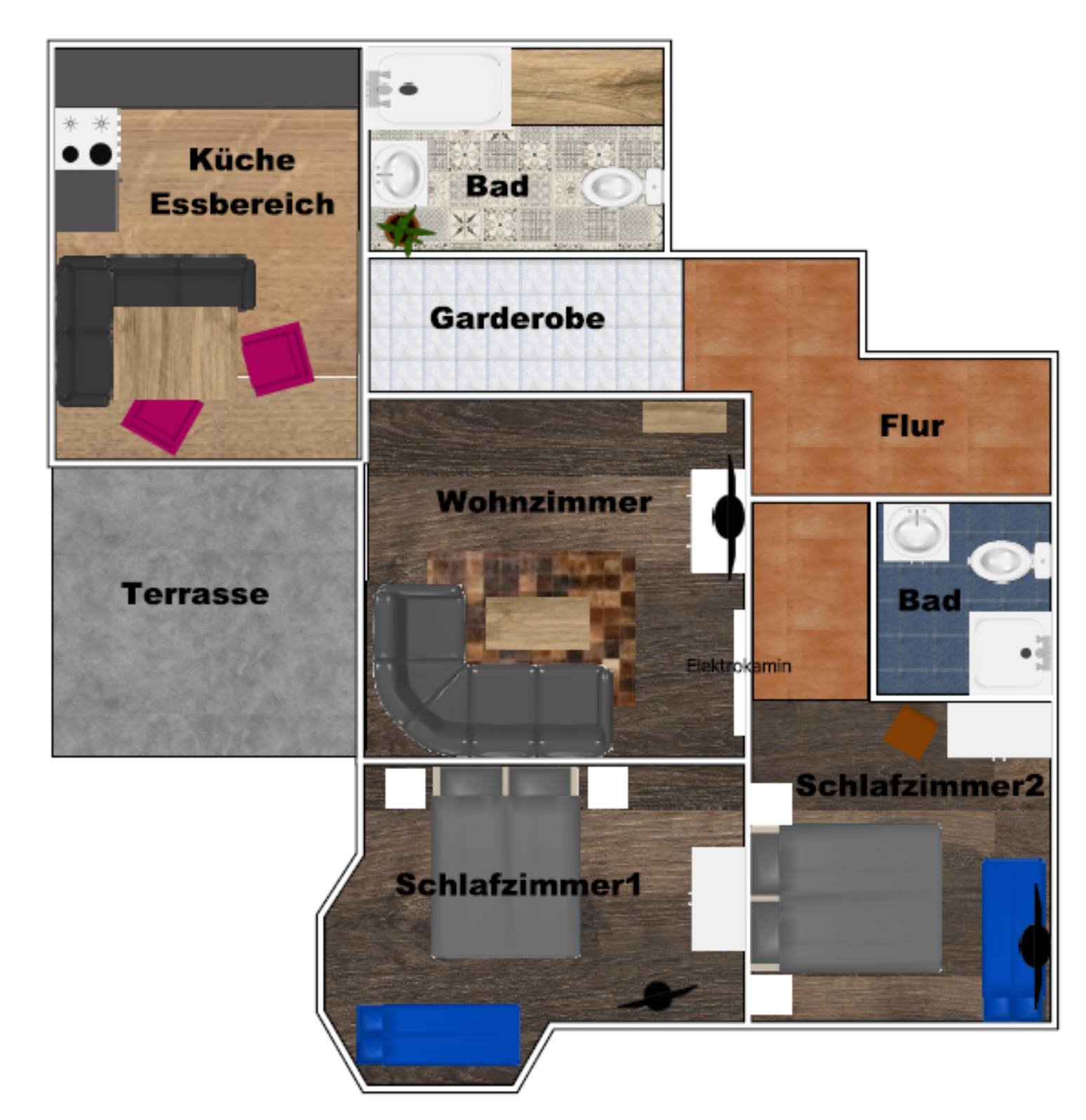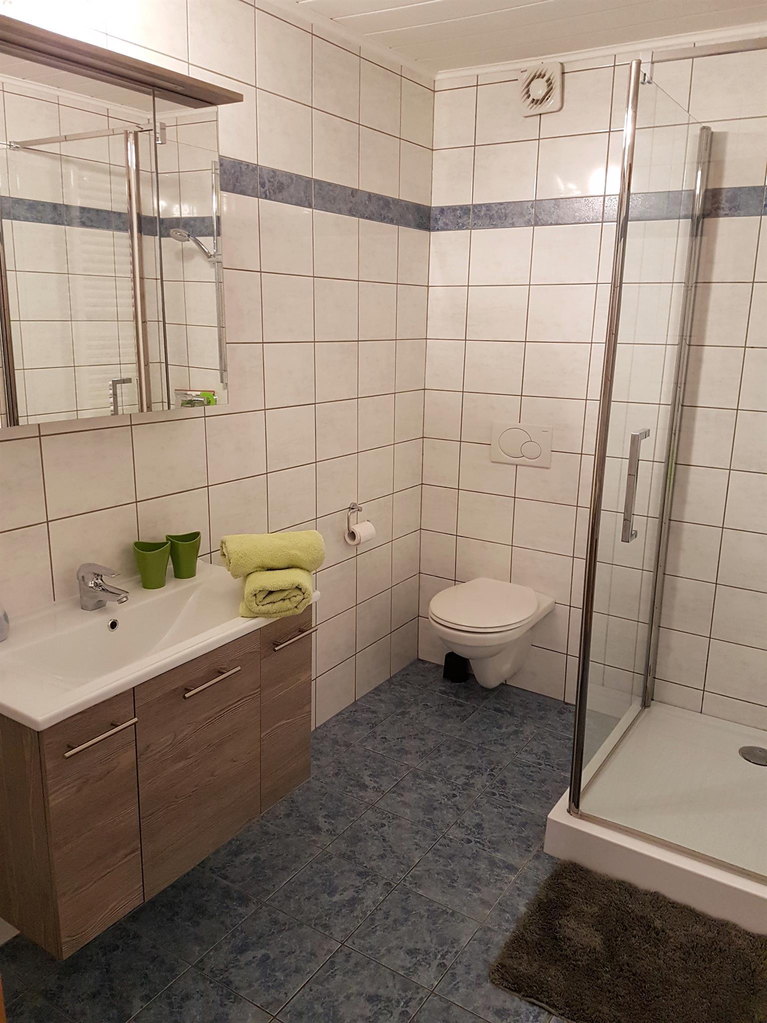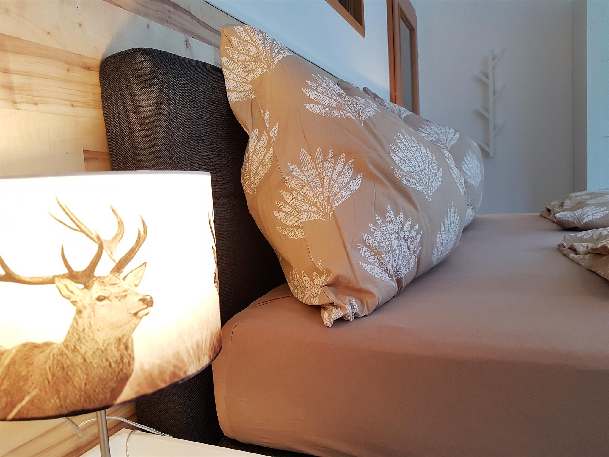 Im Erdgeschoss des Landhauses befindet sich die 105qm² große Wohnung mit neuer Terrasse und Südblick auf die Berge. Sie bietet Platz für 2 bis 6 Personen. In beiden Schlafzimmern befindet sich ein Boxspringbett und je eine Schlafcouch, ein TV und Kleiderschrank. Beide Bäder sind großzügig und verfügen über Dusche, Waschplatz, Seife und Shampoo, Fön und WC. Eine separate voll ausgestattete Küche mit Essbereich und Terrassenzugang. Das Wohnzimmer ist hell und verfügt über einen Smart TV und Sky TV Zugang, einen elektrischen Kamin und ein großes Sofa - dies kann auch als Schlafgelegenheit genutzt werden. Die Wohnung hat einen separaten Eingang.