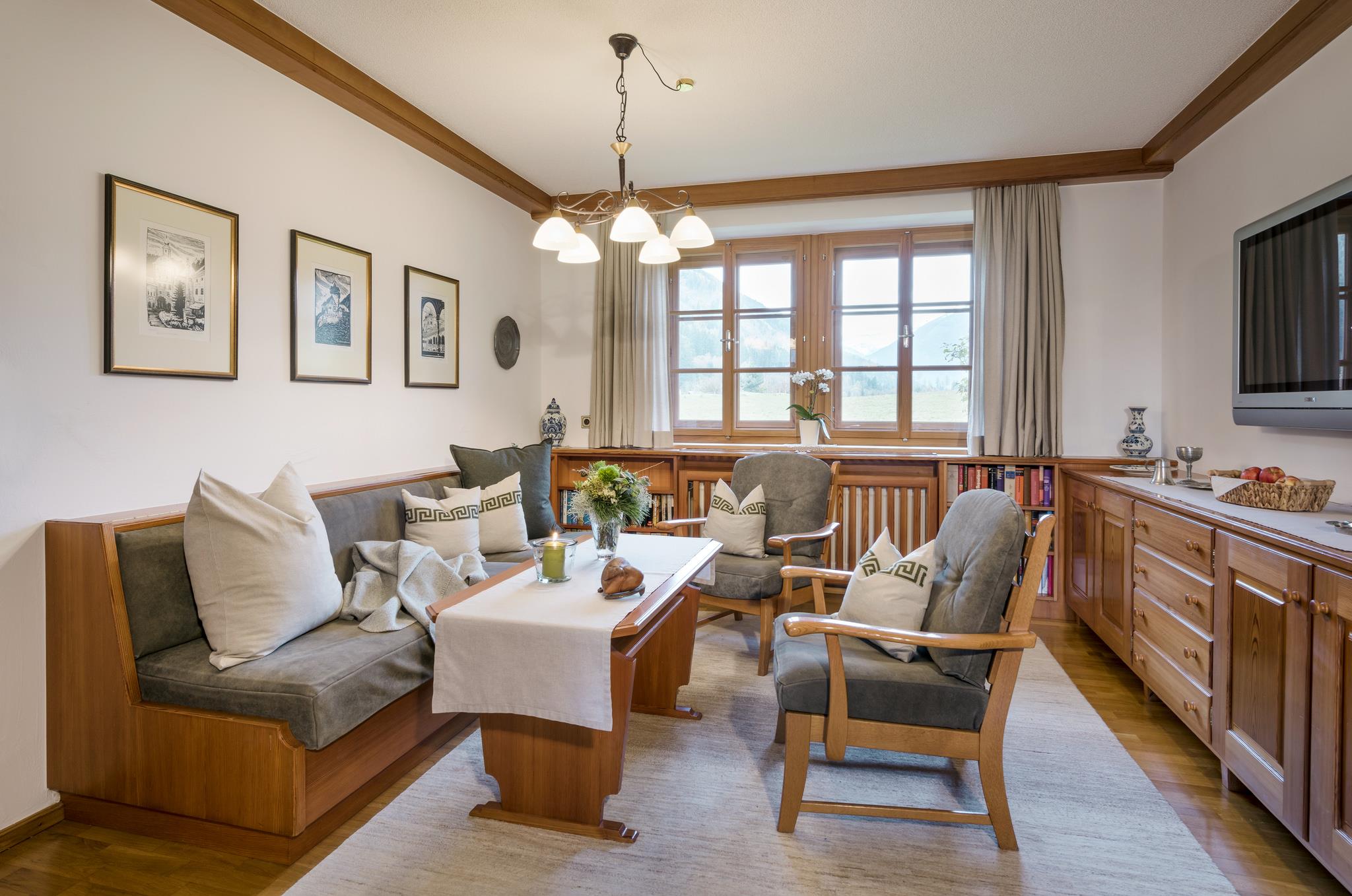 Das 120 m² große Chalet Ingeborg befindet sich am Bauernhof neben dem Gutshaus und bietet Platz für 4-6 Personen. Durch einen großzügigen Vorraum gelangt man in die gemütliche Bauernstube mit anschließender, voll ausgestatteter Küche. Highlight der Bauernstube ist der große, alte Kachelofen für kalte, kuschelige Wintertage. Angrenzend ein großes Badezimmer und die 2 separaten Schlafzimmer sorgen für einen erholsamen Schlaf. Ein weiteres Zimmer mit Doppelbett und eigenem Bad ist durch einen separaten Eingang erreichbar.