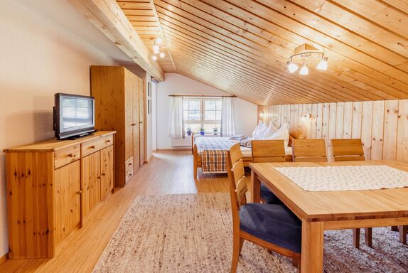 Ein großer Balkon rundum bietet eine wunderbare Aussicht auf unsere Bergwelt. Sie finden bei uns außerdem: SatTV, CD-Player, Radio, Waschmaschine, Geschirrspüler, Mixer, Toaster, Kaffeemaschine, Espressomaschine, Wasserkocher, Backofen, Kühlschrank mit Gefrierfach. Handtücher, Bettwäsche, Putz-Utensilien, Staubsauger sind vorhanden.