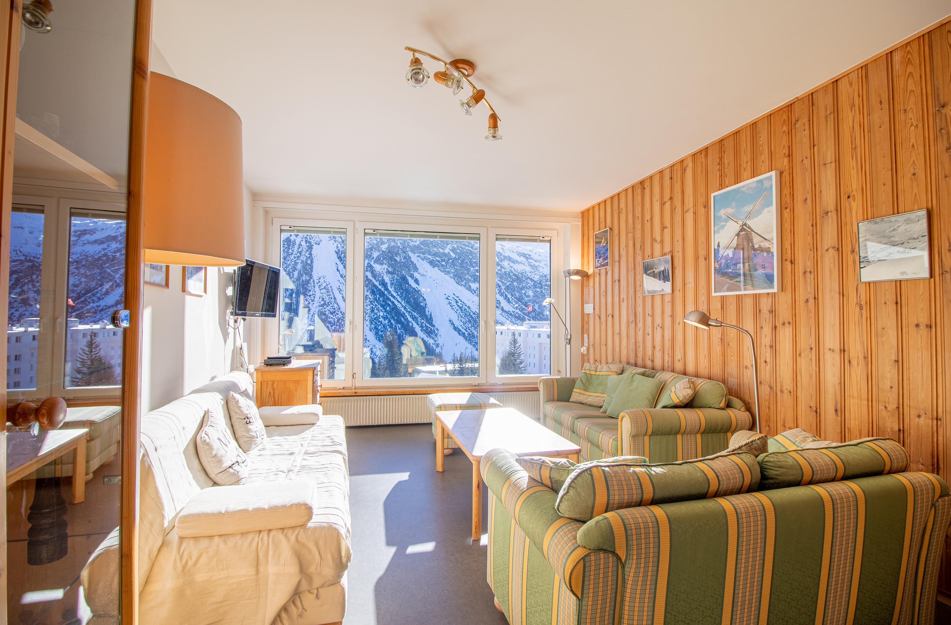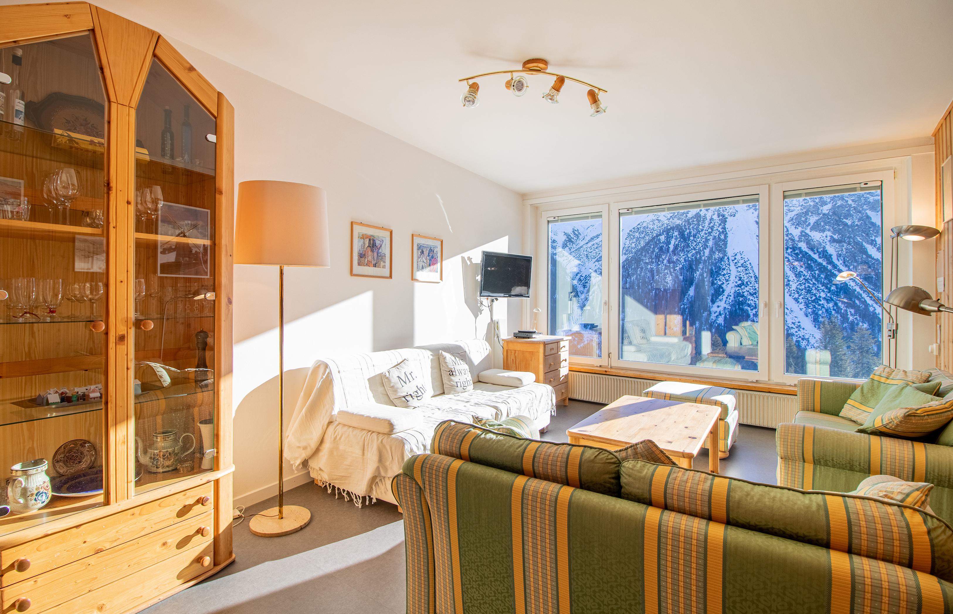 Die helle 3.5-Zimmer-Wohnung befindet sich auf der 3. Etage eines Wohngebäudes an ruhiger Lage im Zentrum von Arosa. Der spektakuläre Bergblick vom Balkon und den Zimmern ist einer der besten in Arosa. Die Bushaltestelle sowie Einkaufsmöglichkeiten an der Hauptstrasse sind in unmittelbarer Nähe der Wohnung.