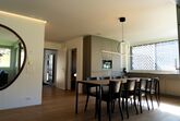Die Wohnung Mitti hat 3 Schlafzimmer und 2 Badezimmer. Der Kamin in der Mitte des Wohnzimmers macht den grosszügigen Wohnraum mit der gut eingerichteten Küche gemütlich. Das Holz der Fassade ist über 150 Jahre alt.