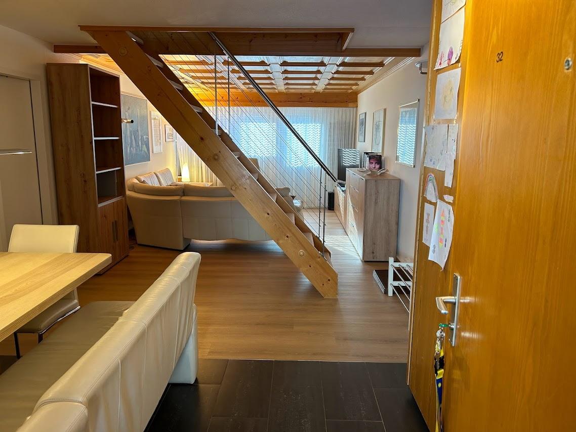 Die doppelstöckige 3 Zimmer Wohnung, liegt im 3 Stock. Mit 2 abgeschlossenen Schlafzimmern, 2 Nasszellen, modern eingerichtete Küche, grosser Wohnraum und unverbaute Sicht auf unsere Bergwelt. Südbalkon mit optimaler Besonnung.
