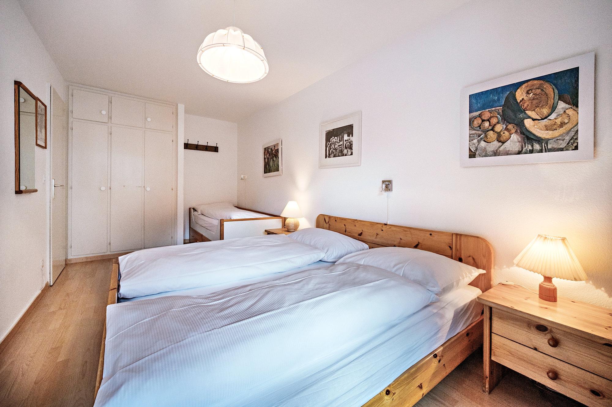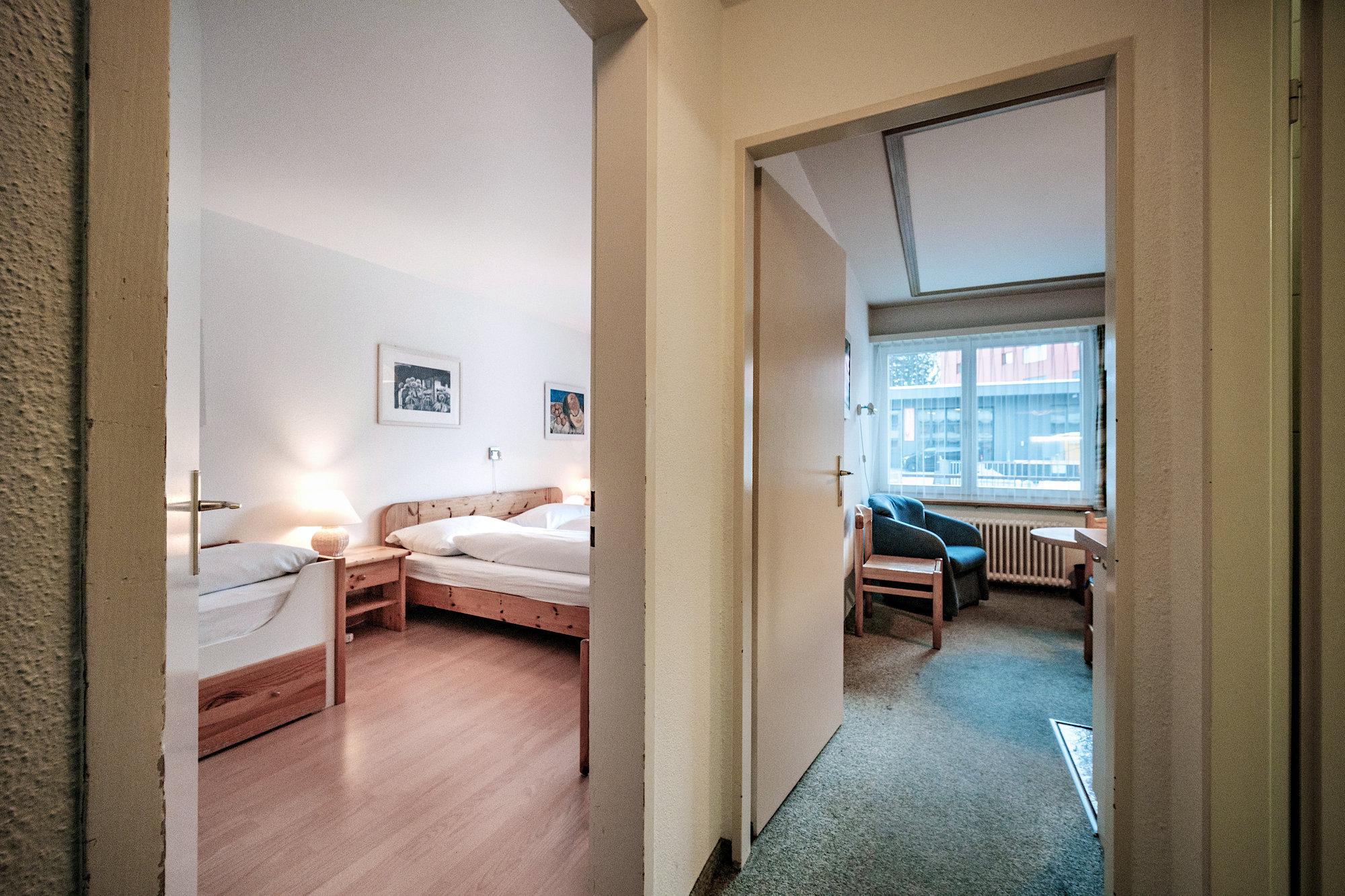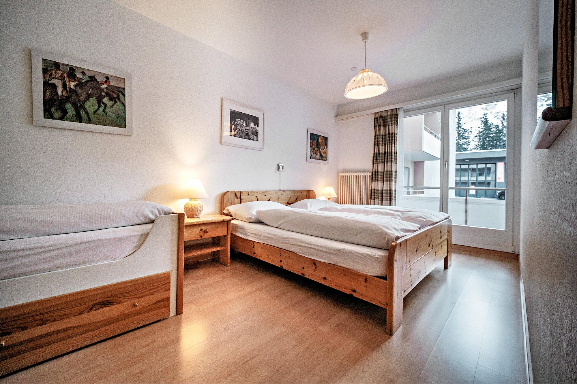 Schlafzimmer mit 2 Betten und 1 Couchbett, Telefon