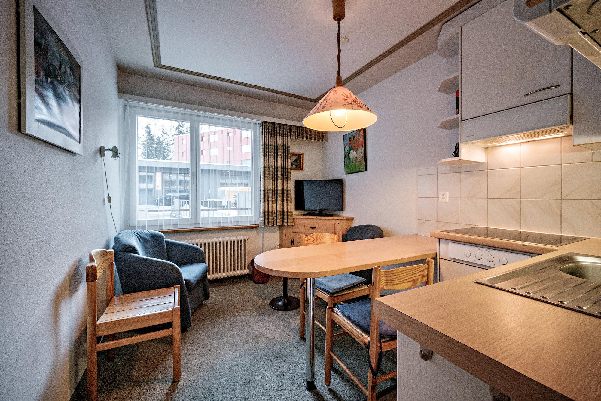 Kleines gemütliches Wohn-/Esszimmer mit 2 Sessel, Radio, LCD-Sat-TV, moderne