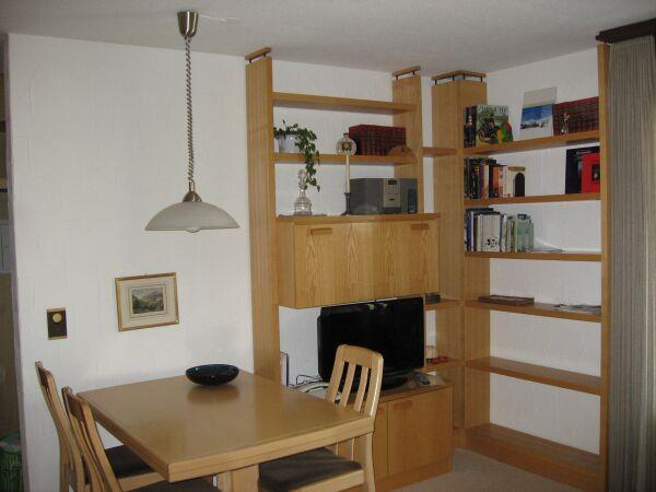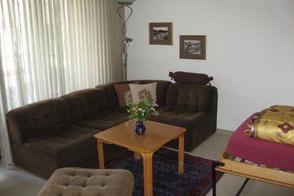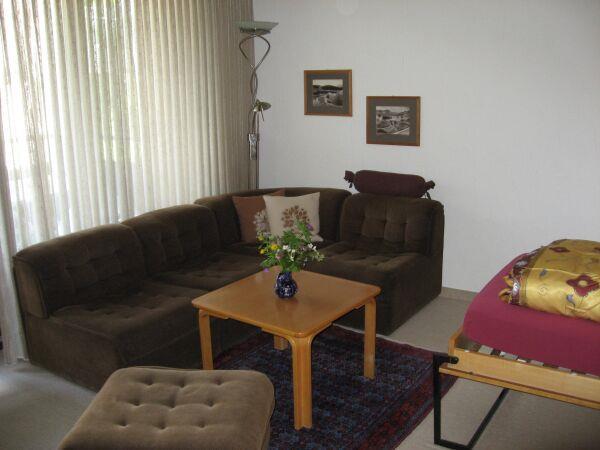 Der Raum (28 m2 Nettowohnfläche ohne Balkon 6 m2) sind komfortabel und gemütlich eingerichtet. Zentralheizung, der Wohnzimmerboden ist mit Wollspannteppich ausgestattet. Koch und Essgeschirr stehen in ausreichendem Masse zur Verfügung.