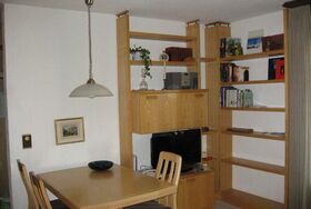 Haus Brüggli B / 1-Zimmer-Ferienwohnung*** B-24 (2. Stock, Lift, 2 Betten) Im Mehrfamilienhaus „Brüggli“. Zentrale, sonnige Lage in Inner-Arosa. In unmittelbarer Nähe finden Sie Sportgeschäfte und Restaurants für alle Ansprüche. Der Zugang zum Skigelände liegt direkt vor der Tür. Problemlose, wintersichere Zufahrt mit dem Auto, reservierter Autoabstellplatz im Freien. Busshaltestelle „AROSA-GRATISBUS“ unmittelbar bei der Liegenschaft. Unsere Ferienwohnung bietet einen Ausblick in die herrliche Landschaft und Alpenwelt von Arosa. Entspannung finden Sie in der hauseigenen Sauna mit Liegeraum. Vollständig eingerichtete EIGENTUMSWOHNUNG bestehend aus: Wohnen/Schlafen: Wohnkombination in Esche mit zwei Klappbetten (je 90 x 190cm), Schränke, Esstisch, gemütliche Polstergruppe, Kostenfreies Internet WELAN, Flachbild-Farb-TV, mit integriertem DVD , Radio.