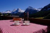 Das Chalet Lill Britta liegt oberhalb der Hörnlibahn auf ca. 1950m üNN in Innerarosa mit freier Sicht auf die umliegenden Berge und wird den ganzen Tag von der Sonne beschienen. Es wurde 1964 von der schwedischen Künstlerin Britta de la Cour erbaut. Lill Britta war ihr Kosename. 30 Jahre hat sie hier gelebt und Ihre bekannten Wiesenblumenbilder gemalt. Sie hat das Chalet ganz nach ihrem Geschmack, mit größtmöglichen Wohnbereichen, vielen praktischen Einbauschränken, interessanten Accessoires und zeitgemäßem Komfort eingerichtet. Es entstand eine Atmosphäre, aus einfacher Bäuerlichkeit gemischt mit hellen, frischen Farben und luftiger, blumiger Fröhlichkeit. Eine konstruktive und positive Kreation. Jede der 3 Wohnungen hat ihre individuelle Note. Wir sind bemüht diesen ursprünglichen Stil zu pflegen und zu erhalten. Unsere Gäste, die zum Teil seit vielen Jahren ihre Ferien bei uns verbringen, bestätigen immer wieder die Richtigkeit unserer Philosophie. Für Skifahrer: Sie fahren mit den Skiern direkt von der Haustür hinunter zur Hörnlibahn und am Abend zurück bis vor die Haustür.