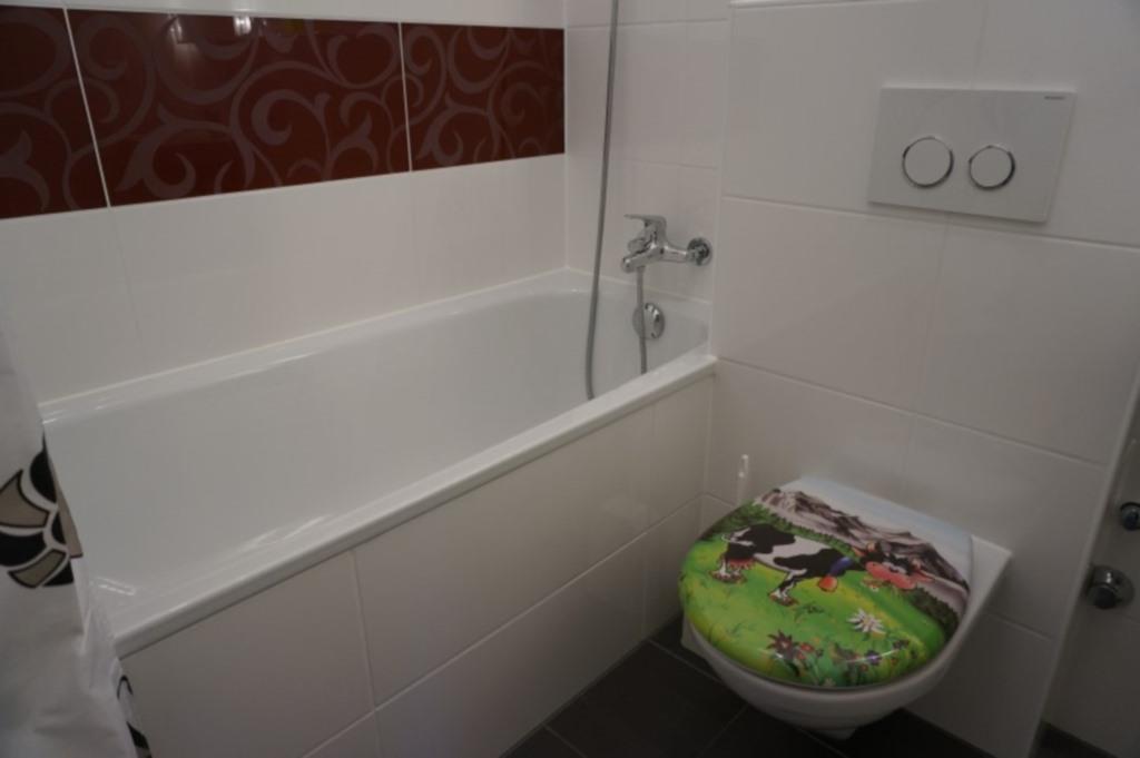 Neu renoviertes Bad/WC mit Badewanne, Föhn. Staubsauger, Wäscheständer, Gesellschaftsspiele, Bücher etc. vorhanden.“