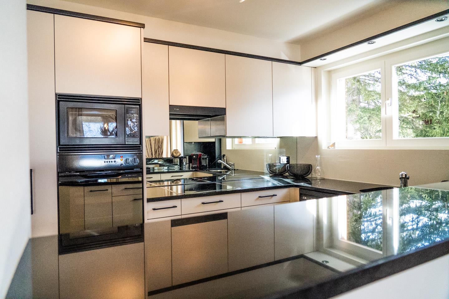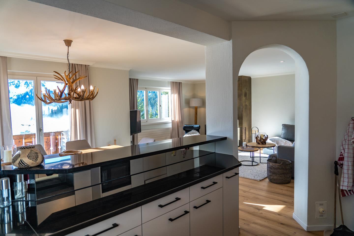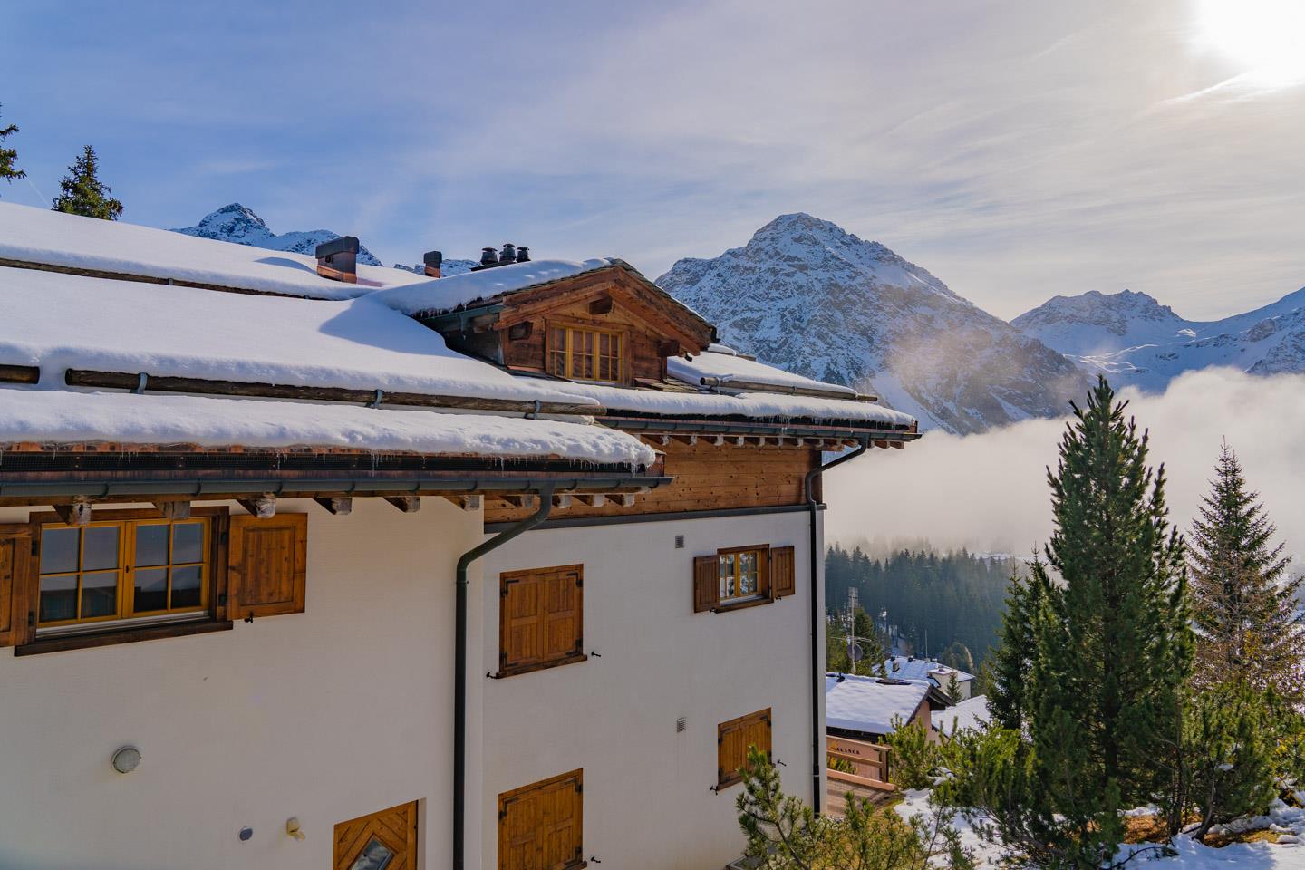 Frisch renovierte 3½ -Zimmer Ferienwohnung (85m2) mit gemütlichem Wohn-/Küchenbereich, Kamin und überdecktem Balkon mit schönem Blick auf die Arosa Berge. 2 Schlafzimmer, 2 Badezimmer, 1 Garagenplatz und Skiraum. Dampfsauna. Bushaltestelle ist nicht weit weg.