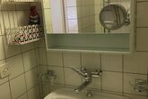 Das Badezimmer ist mit Lavabo, Spiegelschrank, Badewanne mit Brauseeinrichtung und WC ausgestattet.