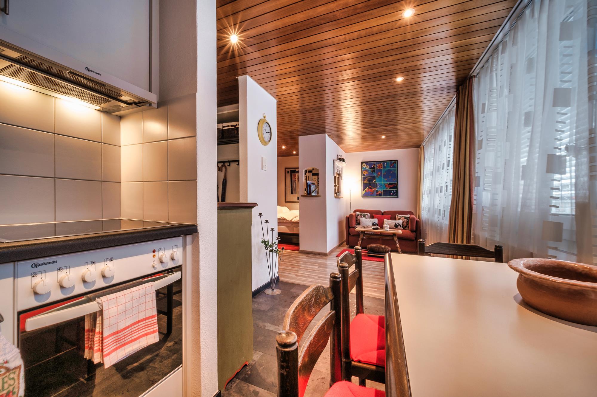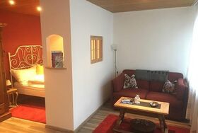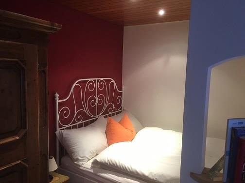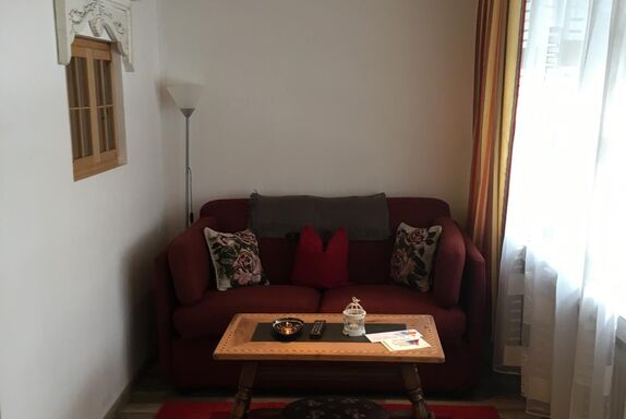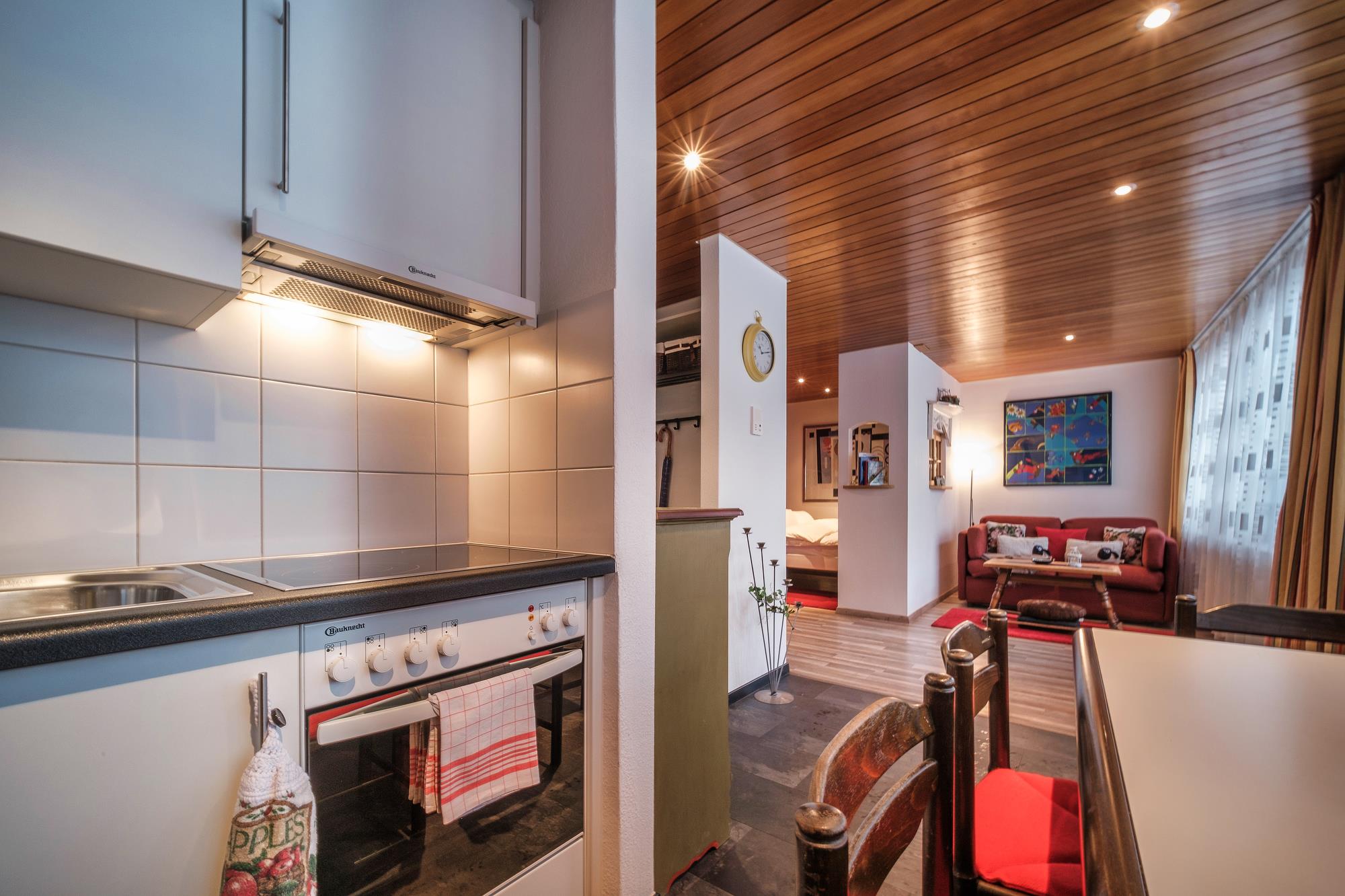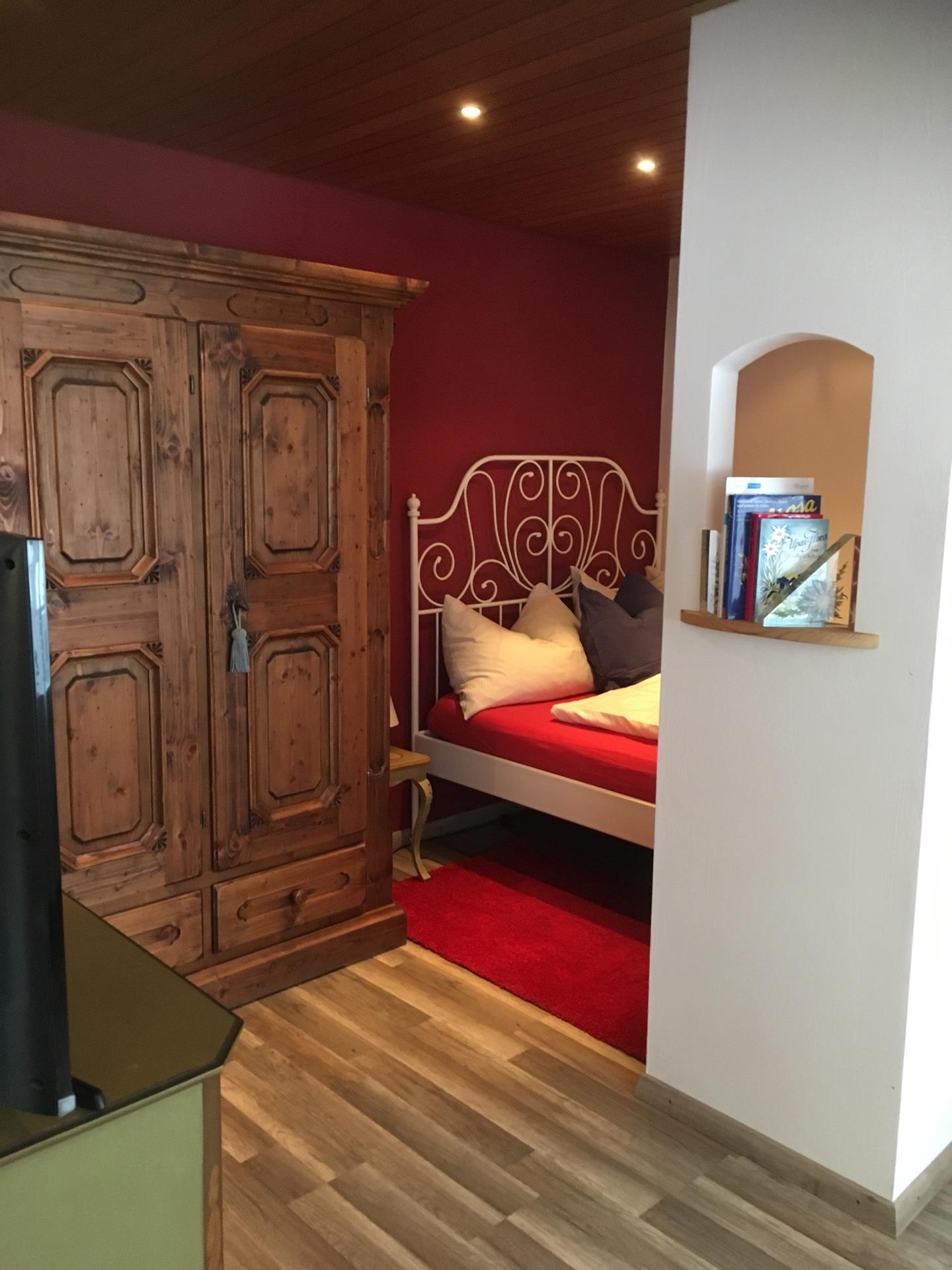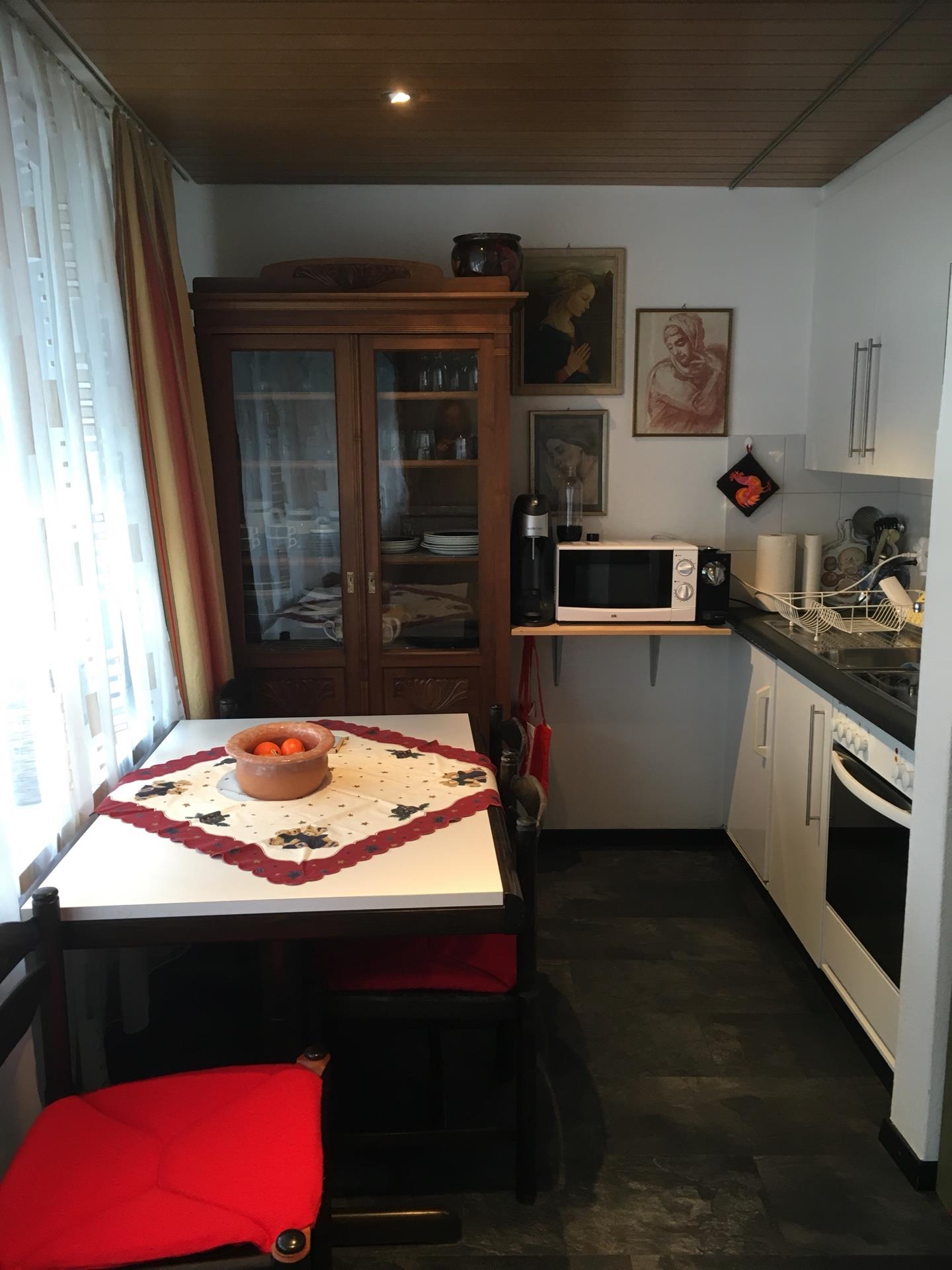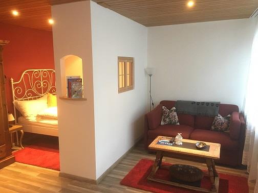 Die gut ausgestattete 1 1/2-Zimmer-Wohnung im 1. OG ist für 2 Personen ideal geeignet. Wohn- und Schlafbereich sind durch einen Raumteiler getrennt.