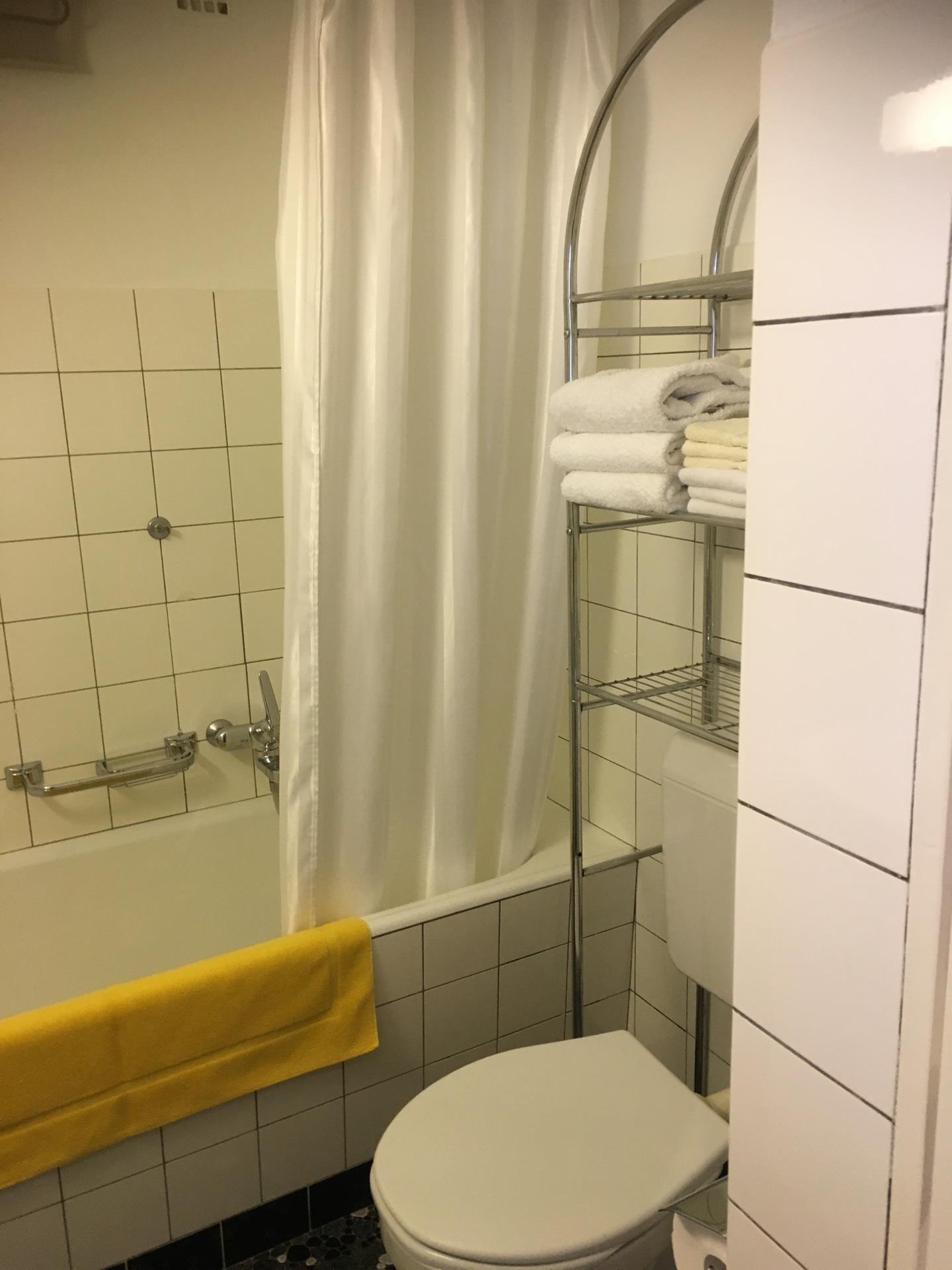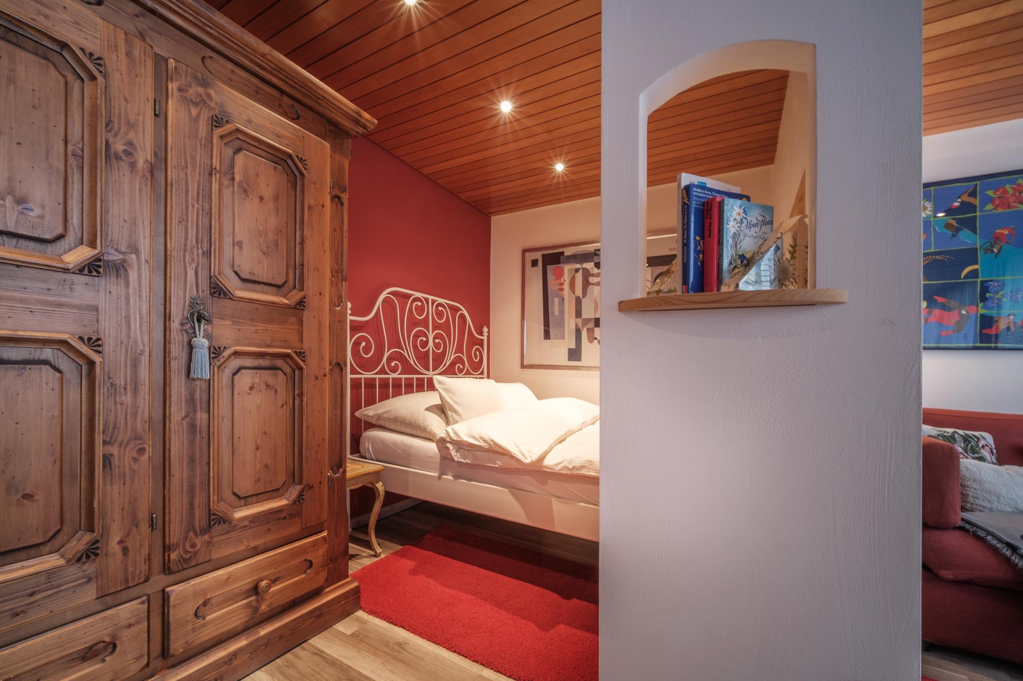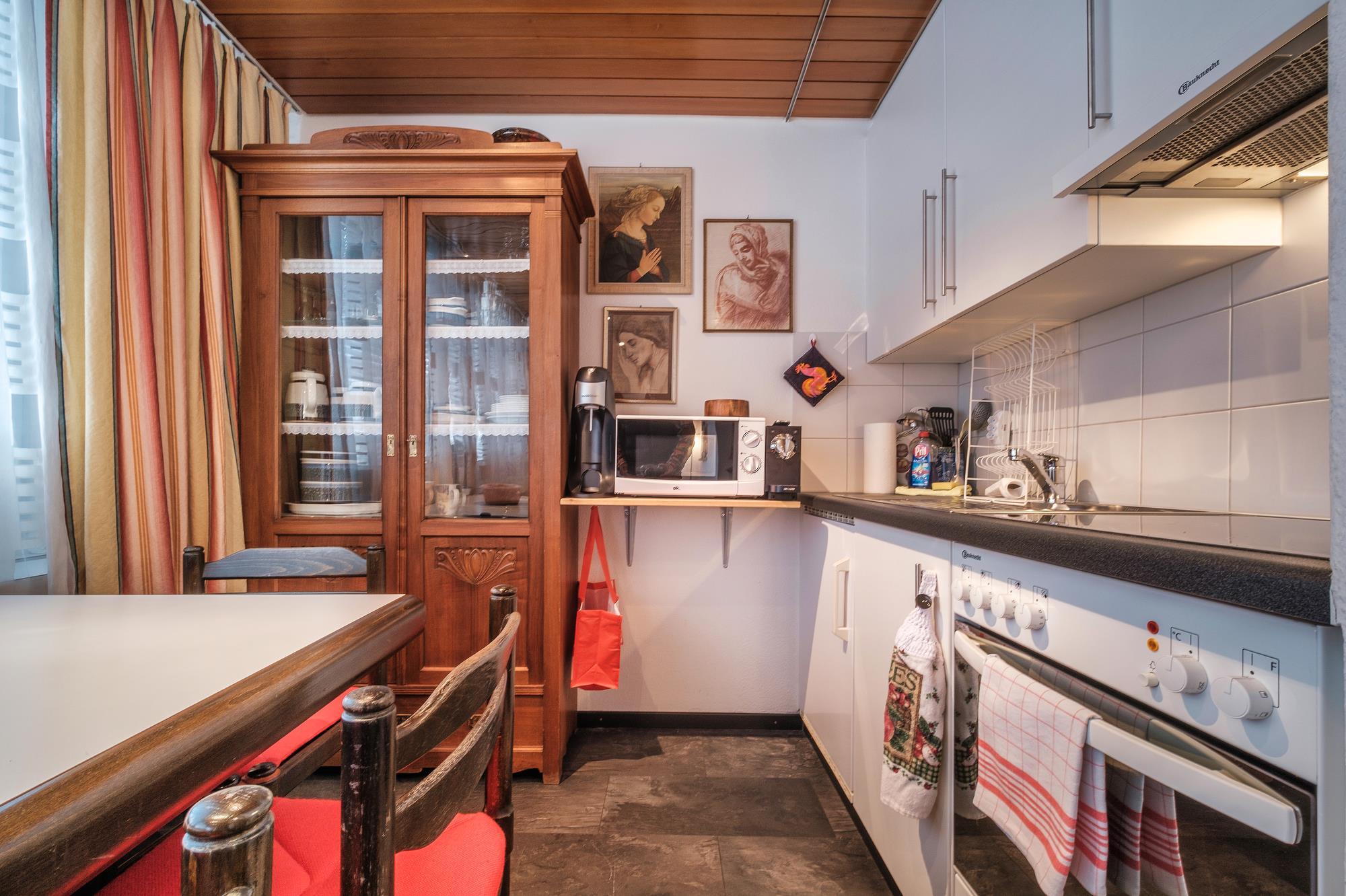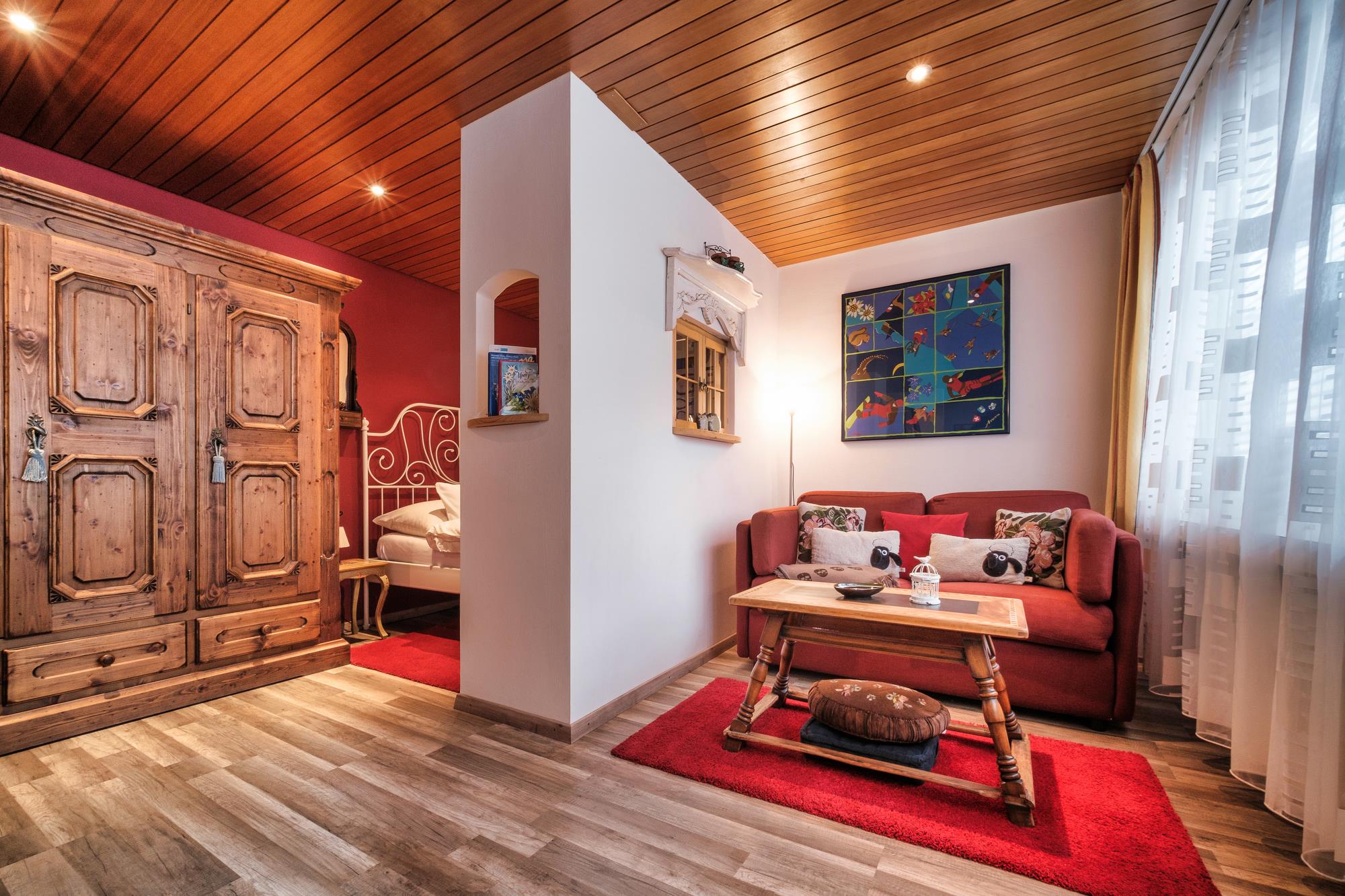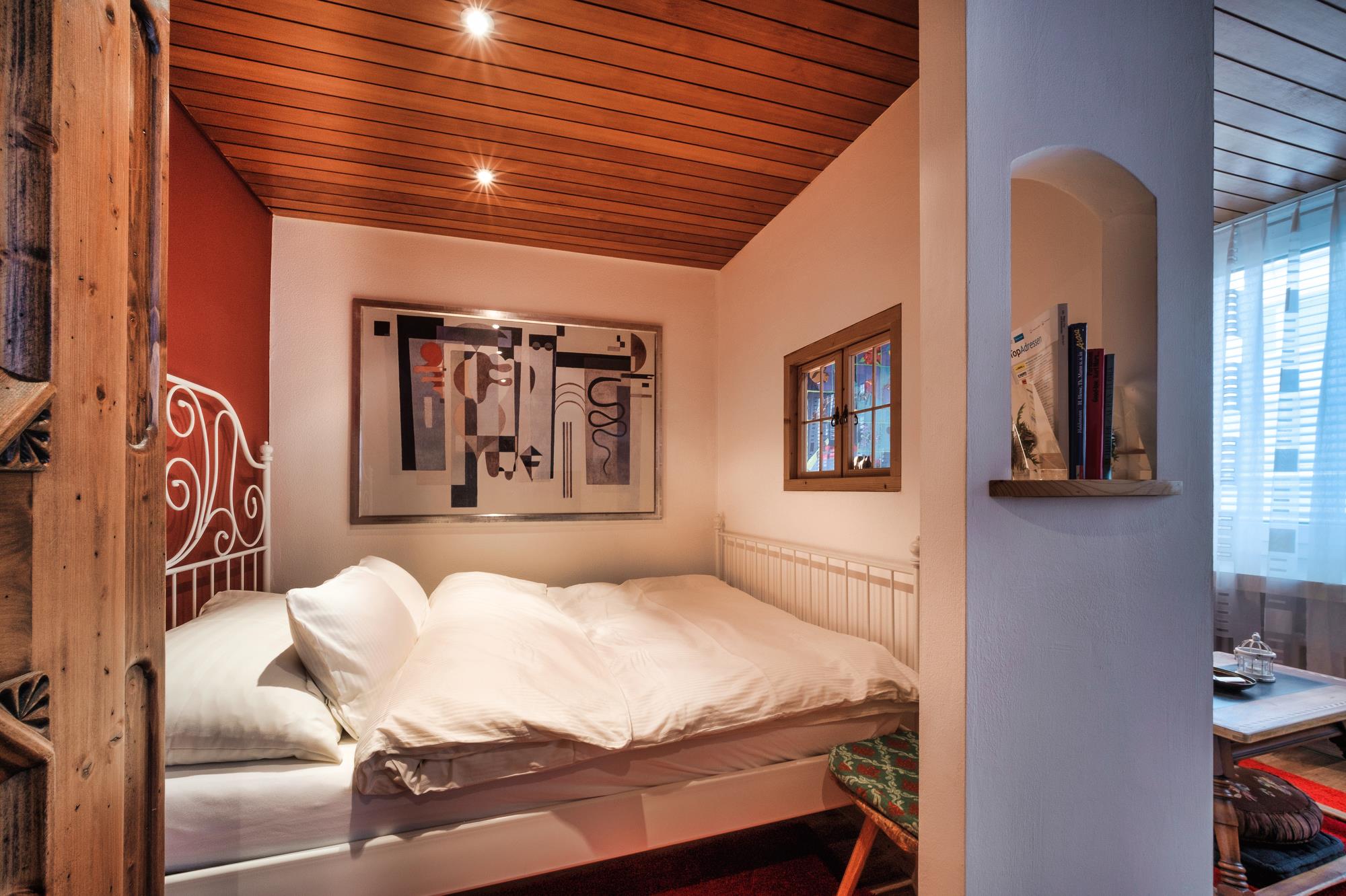 Die gut ausgestattete 1 1/2-Zimmer-Wohnung im 1. OG ist für 2 Personen ideal geeignet. Wohn- und Schlafbereich sind durch einen Raumteiler getrennt.