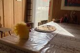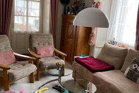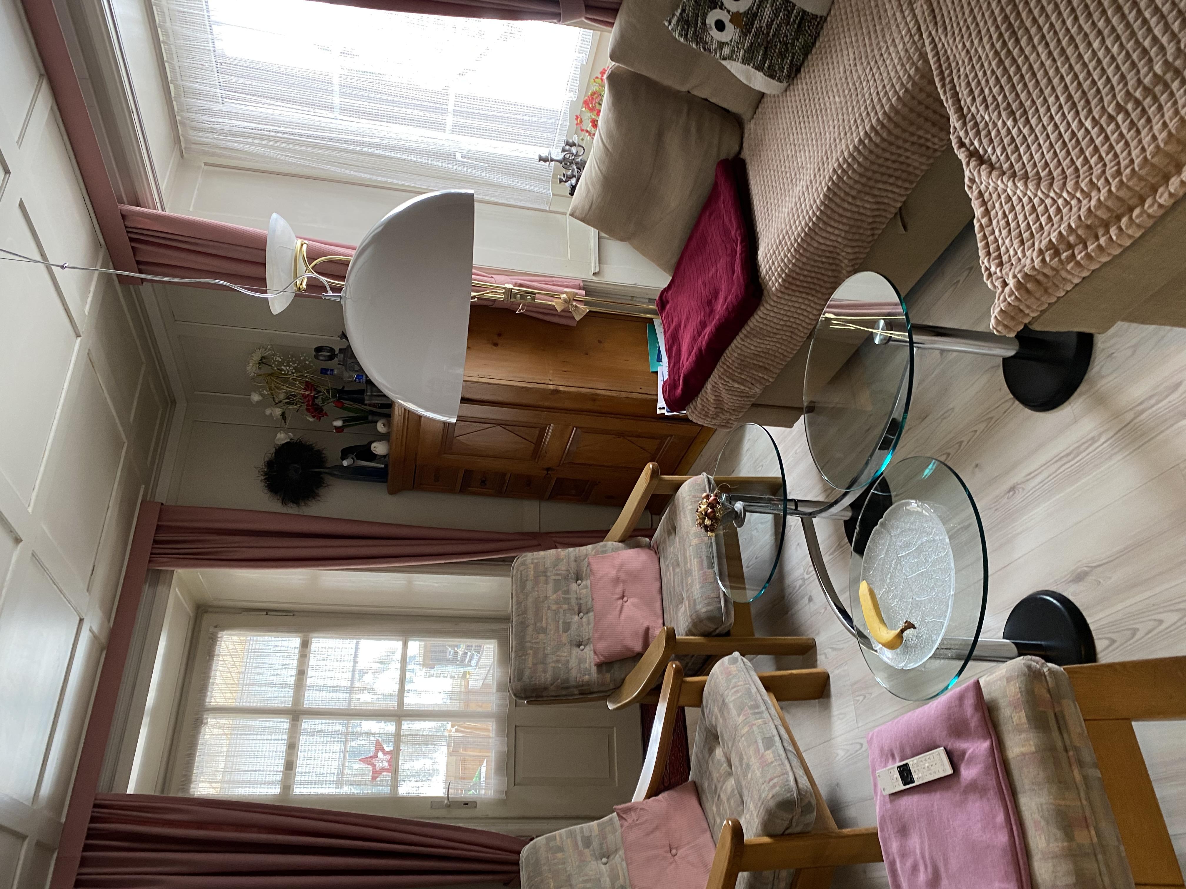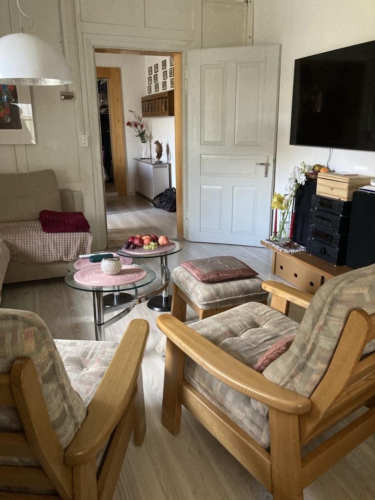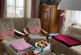Im Wohnzimmer kann aus dem Sofa ein Doppelbett gemacht werden (ausziehbar).