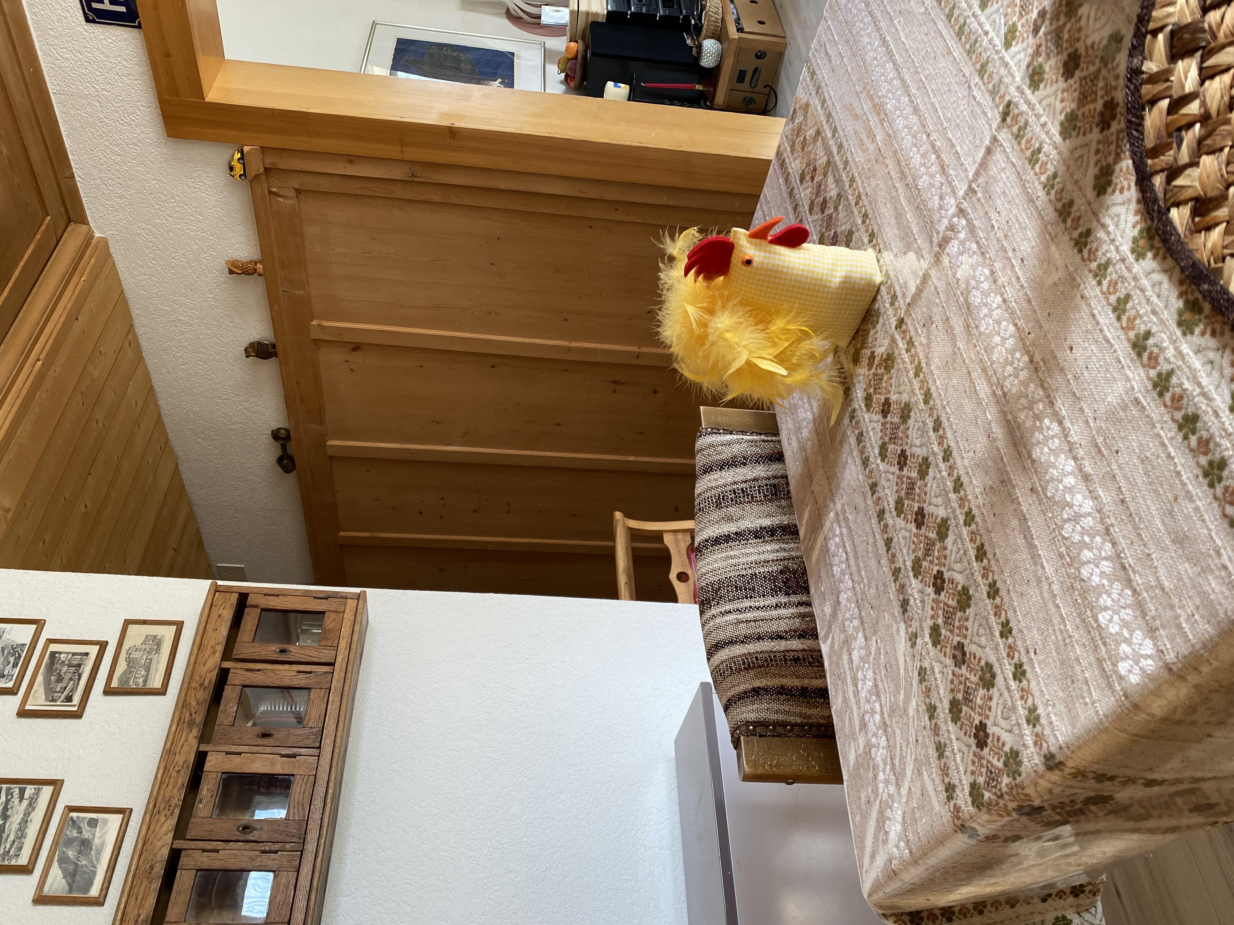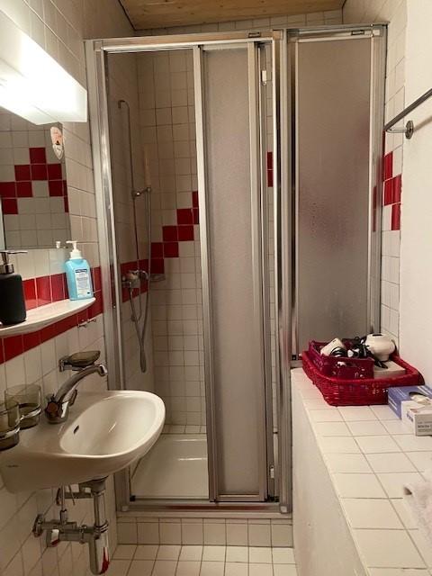 5 Zimmer Wohnung, verglaste Verande, gedeckter Pavillon, Skiraum, 3 Schlafzimmer, 1 Wohnzimmer, 1 Esszimmer, Bad, Küche, Zusätzliche Dusche und  WC im hinteren Teil, Abstellraum