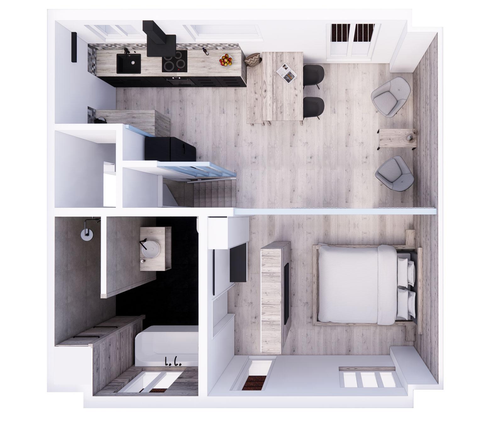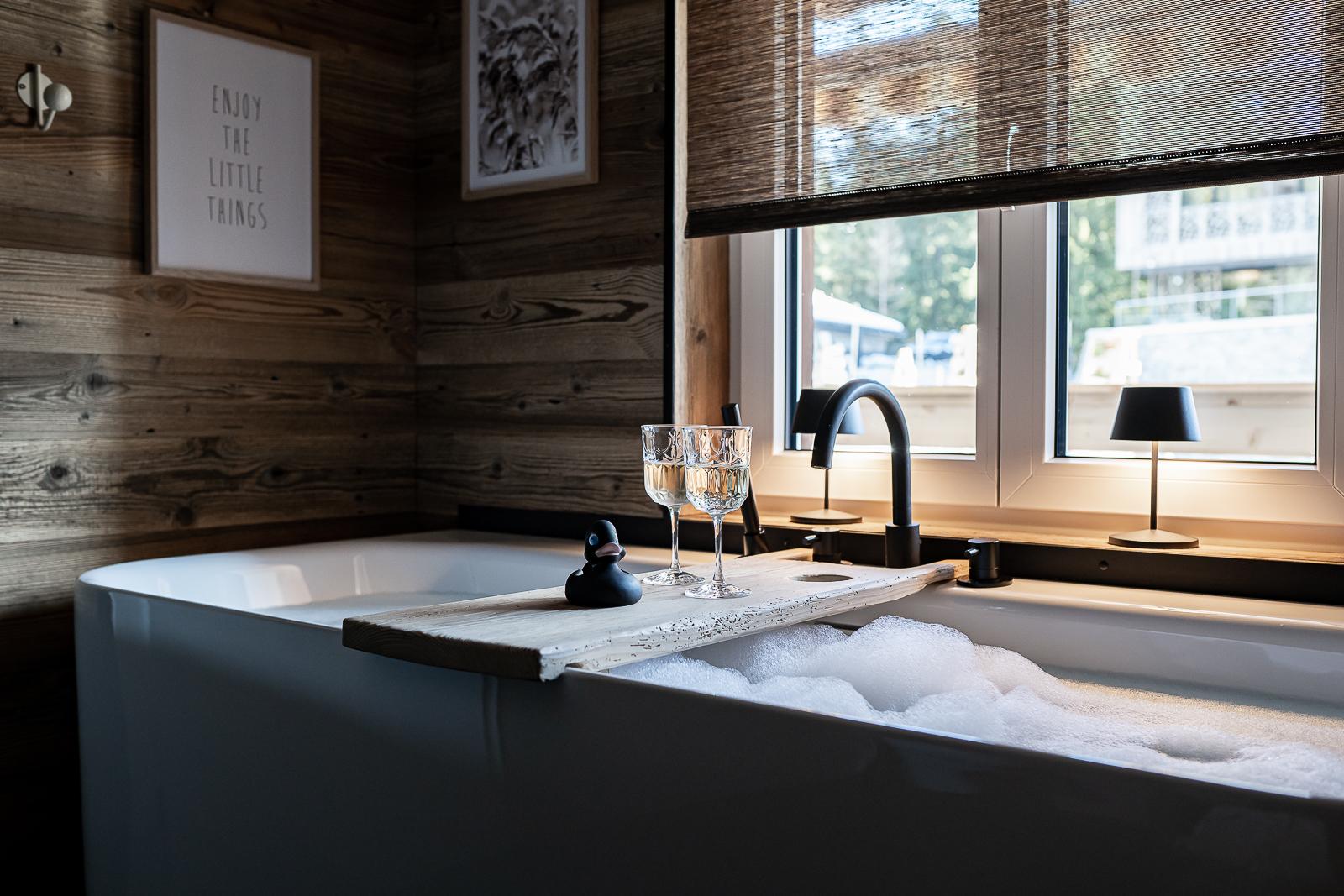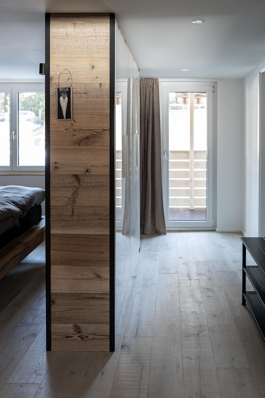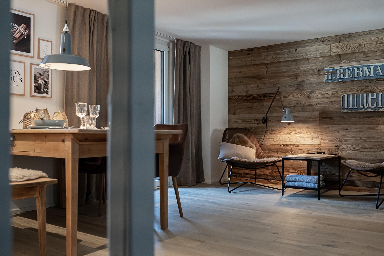 Unsere frisch renovierte Wohnung mit 50 m² bietet Rückzug für 2 Personen in einem offenen Wohn- und Schlafbereich. Der Duft von Altholz, natürlichen Farben und sinnlichen Stoffe prägen den schlicht-edlen Naturstil der Loft Wohnung. Zwei bequeme Lounge Sessel im gemütlichen Wohnbereich laden Sie zum Verweilen ein. Der Küchenbereich ist mit Geschirrspülmaschine, Kaffeemaschine, Wasserkocher, Backofen, Induktionsherd, Geschirr und Besteck vollausgestattet. Ein wahrer Hingucker ist der freistehende Kühlschrank mit kleinem Gefrierfach. Der antike Küchentisch lädt ein für Genussmomente, Spielabende, lesen, schreiben sowie genügend Platz für Homeoffice. Im Schlafbereich befindet sich ein großes Doppelbett aus massivem Eichenholz und zwei Einzelmatratzen mit je 90x200cm. Die Decken und Kissen sind aus hochwertigen Daunen. Ein großer Flachbildschirm sorgt für gemütliche Filmabende. Rückseitig befinden sich die Kleiderschränke und die Garderobe. Der einzig schließbare Raum ist das großzügige Badezimmer. Das schlicht-edle Bad ist die zeitgemäße Interpretation einer traditionellen Berghütte mit viel Holz. Modern, ohne kühl zu sein. Die kleine alte Werkbank wurde zu einem Waschtisch umfunktioniert und der große Runde Spiegel füllt den Raum mit noch mehr Tiefe aus. Eine grosse Regendusche ergänzt das Wellness Angebot und die moderne Badewanne lädt zum Relaxen ein, mit einer wunderbaren Sicht auf das Schiesshorn.