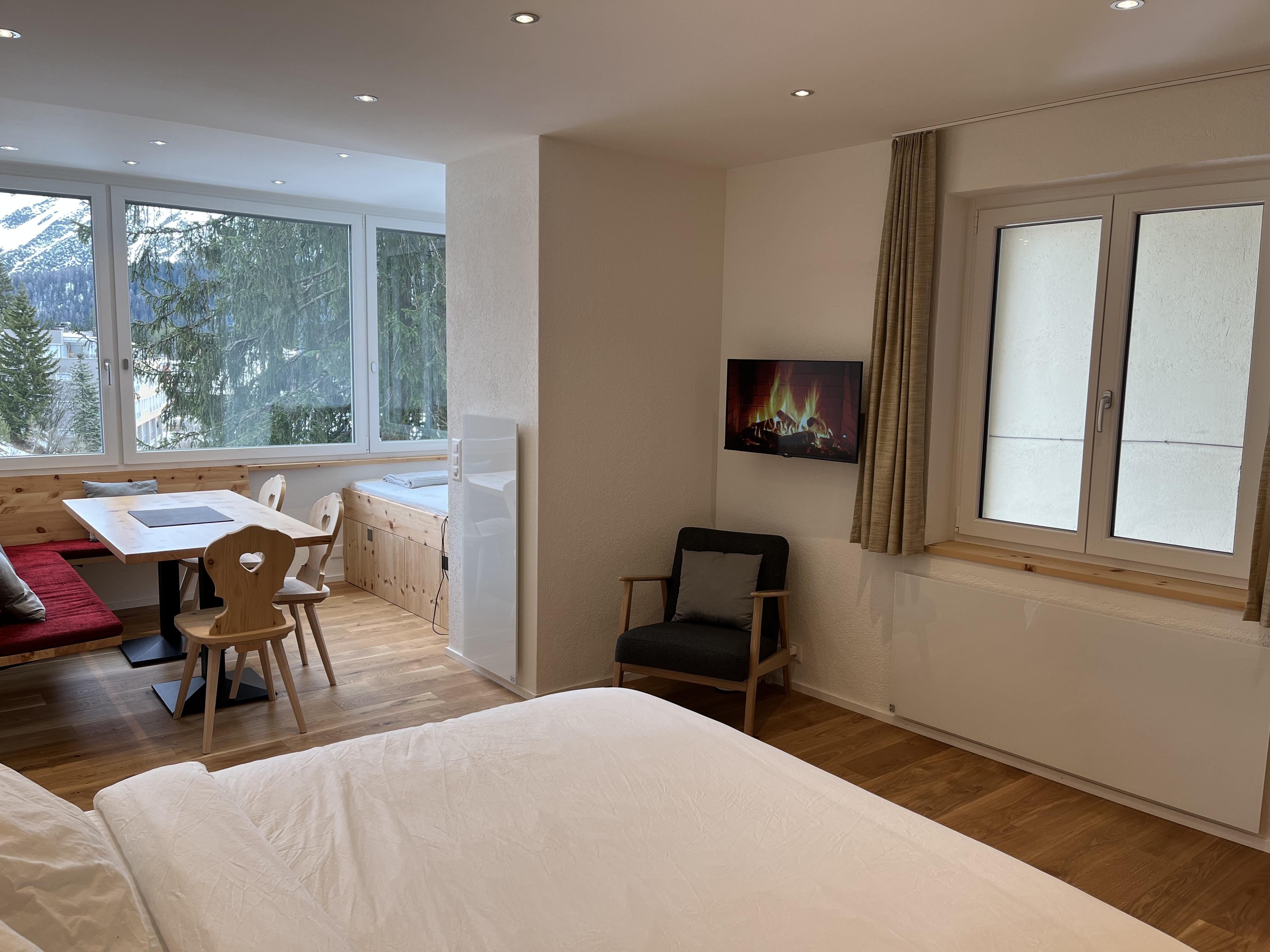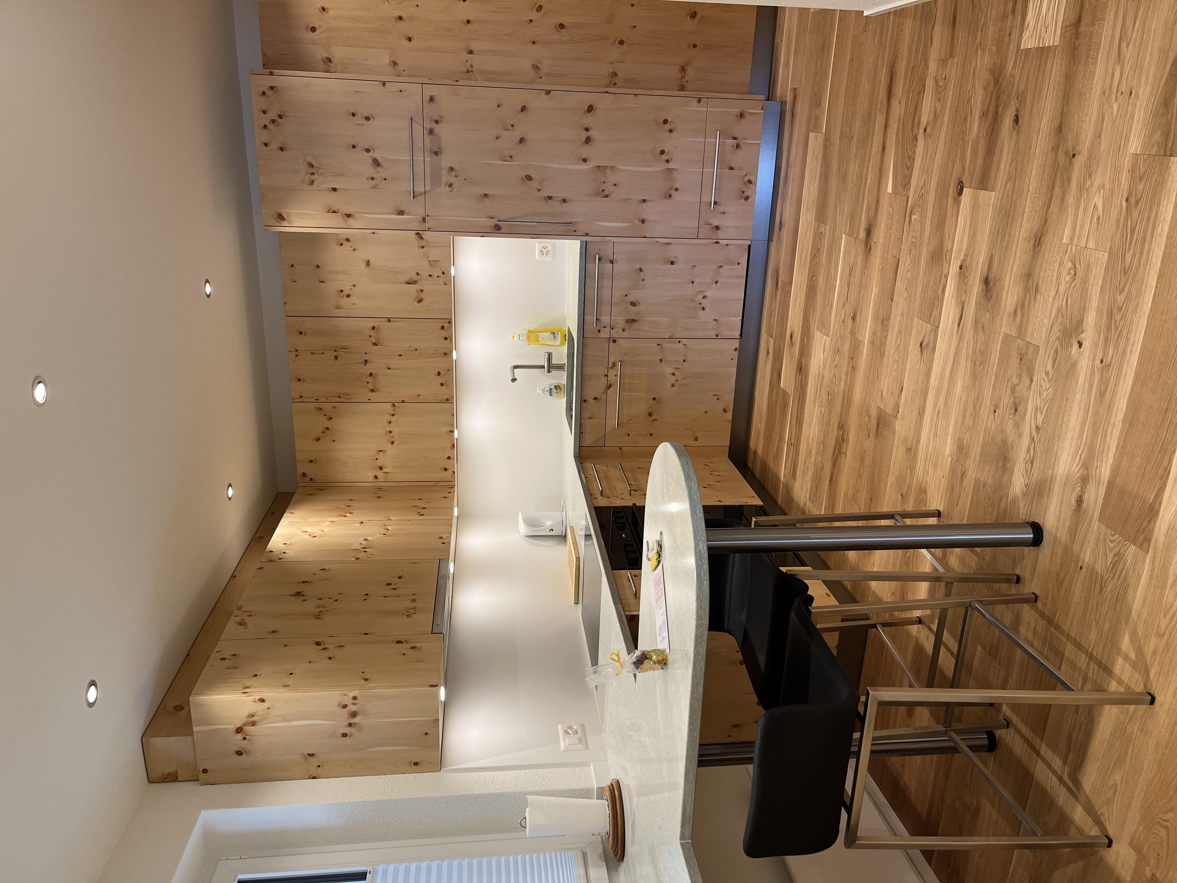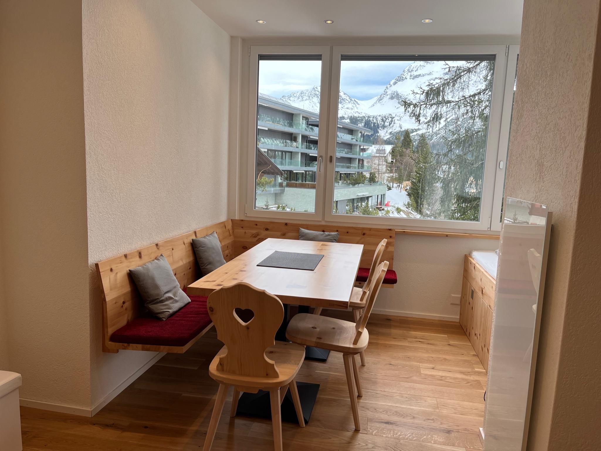 Die Wohnung wurde im Herbst 2022 komplett neu ausgebaut und möbliert. Dabei wurde grossen Wert auf natürliche Materialien aus der Region gelegt. Sie finden Valser Quarzit im Badezimmer, Verde Spluga als Abdeckung in der Küche und viel wohlriechendes Arvenholz aus dem Engadin. Eines der Highlights ist das elektrisch verstellbare Daybed mit fantastischer Aussicht auf die Aroser Bergwelt. Die Ferienwohnung ist ideal für zwei Erwachsene (mit einem Kind). Sie ist grosszügig konzipiert mit einer grossen Fensterfront Richtung Osten und Süden. Eine luxuriöse Innenausstattung mit viel Holz garantiert einen erholsamen Aufenthalt.Die Inneneinrichtung eignet sich genauso für einen ausgedehnten Winter- oder Sommerurlaub wie auch für einen paar Tage Homeoffice in den Bergen. In grossen Einbauschränken finden alle mitgebrachten Utensilien spielend Platz. In der grosszügigen Küche in Arvenholz und Granit Verde Spluga fühlt sich jeder Hobbykoch und jede Profiköchin sofort zurecht. Modernste Geräte von V-ZUG stehen in der komplett eingerichteten Küche zum Einsatz bereit.Das Badezimmer mit der grosszügigen Dusche ist mit Valser Quarzit ausgestattet und bietet angenehmen Komfort.