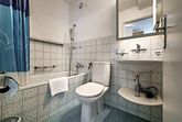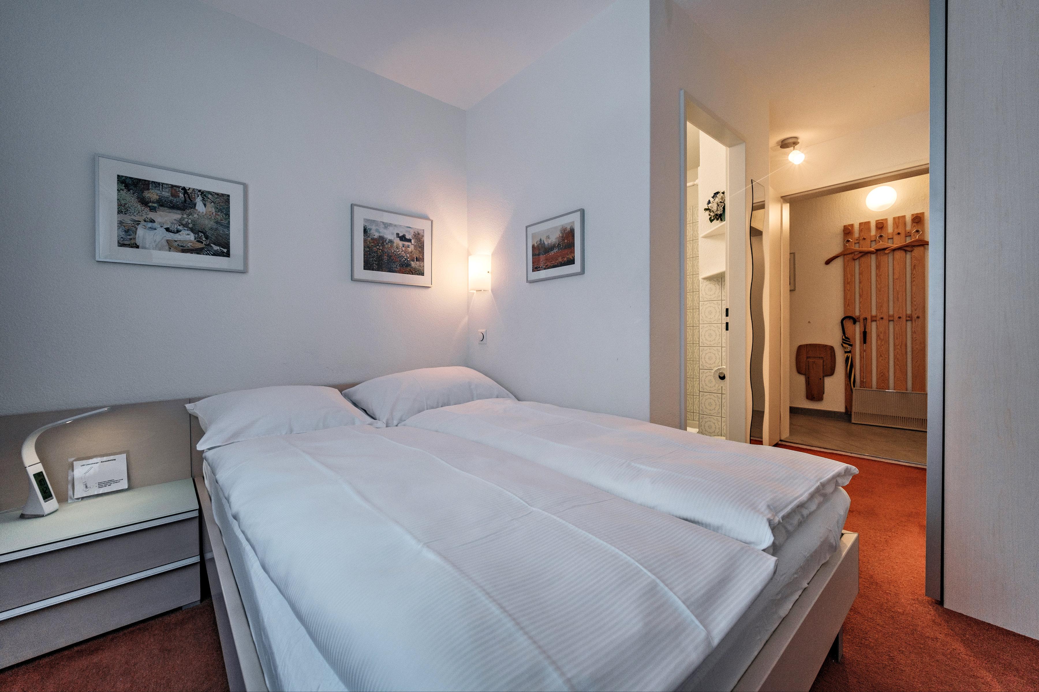 Kleineres Schlafzimmer (franz. Bett 140 cm ) mit LCD-SatTV und Dusche/WC