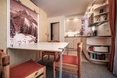 Wohnschlafzimmer in hellem Holz eingerichtet mit 2 Schrankbetten (je 90x200) und integriertem Esstisch